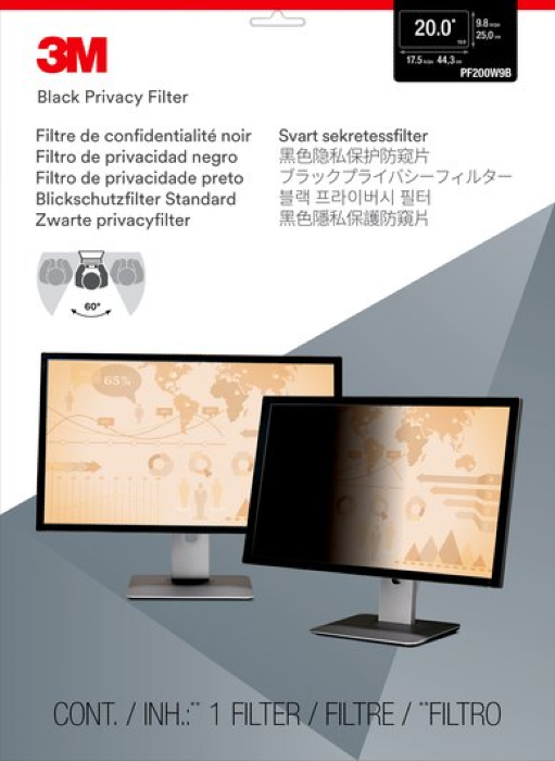 A 3M™ fekete adatvédelmi szűrők a monitorok számára rendkívüli „kisötétítő” adatvédelmet biztosítanak oldalnézetből, miközben kiváló, nagy felbontású megtekintési élményt biztosítanak. A fényes és a csillogáscsökkentő matt oldal egyaránt használható, utóbbi elősegíti a tükröződés csökkentését, és elrejti az ujjlenyomatokat, így élvezheti a tiszta kép világosságát.