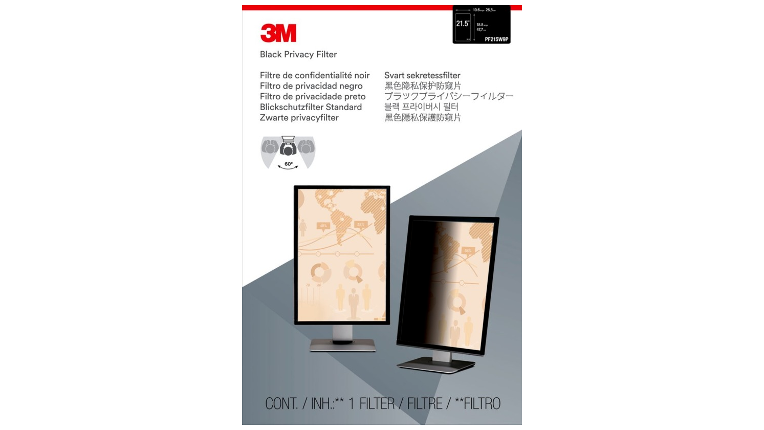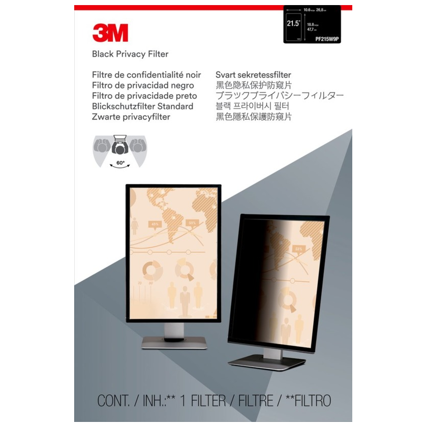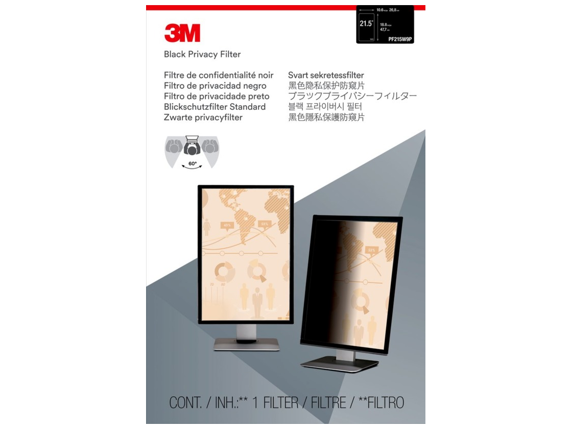 A 3M™ fekete adatvédelmi szűrők a monitorok számára rendkívüli „kisötétítő” adatvédelmet biztosítanak oldalnézetből, miközben kiváló, nagy felbontású megtekintési élményt biztosítanak. A fényes és a csillogáscsökkentő matt oldal egyaránt használható, utóbbi elősegíti a tükröződés csökkentését, és elrejti az ujjlenyomatokat, így élvezheti a tiszta kép világosságát.