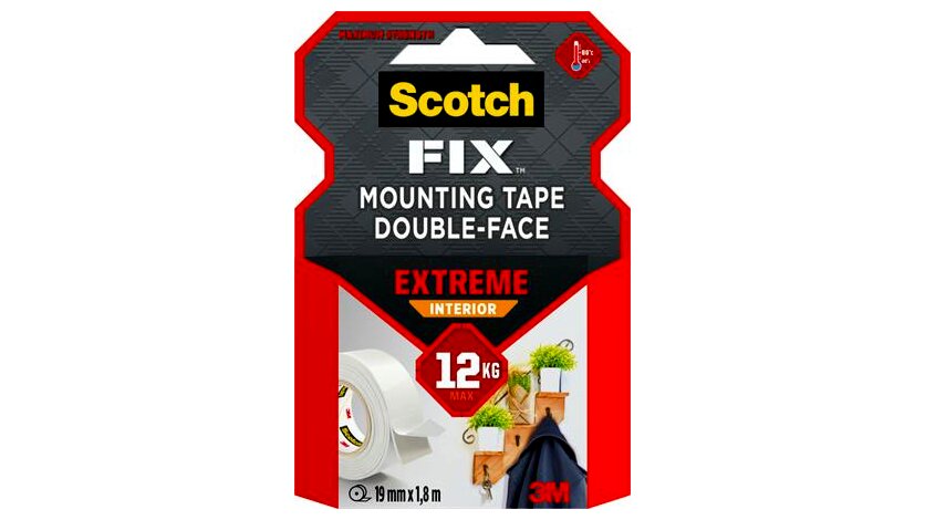 A Scotch-Fix™ Extreme beltéri kétoldalú ragasztószalaggal gyorsan és könnyedén végezheti el a munkát, legyen szó fogas felszereléséről vagy fali polc behelyezéséről. Nem szükséges más eszköz a rögzítéshez, így időt és energiát takaríthat meg.