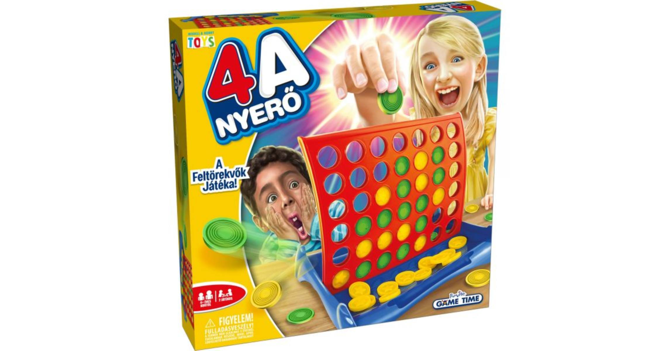 A 4 a nyerő a feltörekvők játéka! Az ügyességi játékban a sárga és zöld korongoké a főszerep. A játékosoknak fel kell sorakoztatni 4 db korongot a saját színükből ahhoz, hogy megnyerjék a játékot. A 4 db korongot függőlegesen, vízszintesen és átlósan is össze lehet rakni.