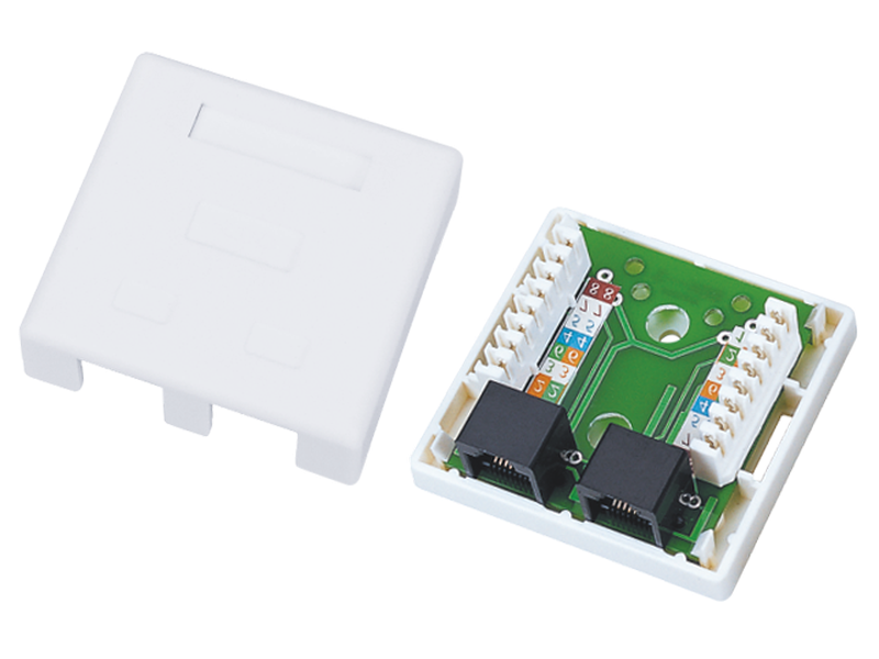 - Árnyékolatlan (UTP) 2x RJ45 CAT5e csatlakozó doboz