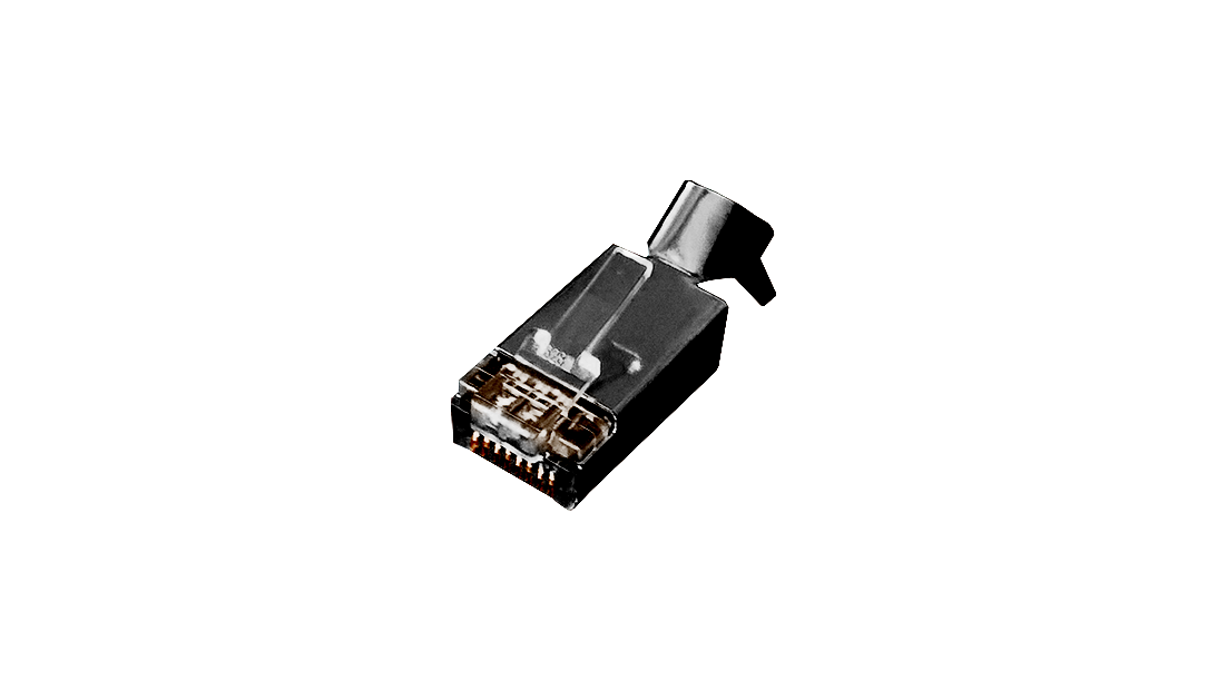 Árnyékolt RJ45 moduláris dugó STP "vastag tömör vezetékhez" 23-24 AWG.