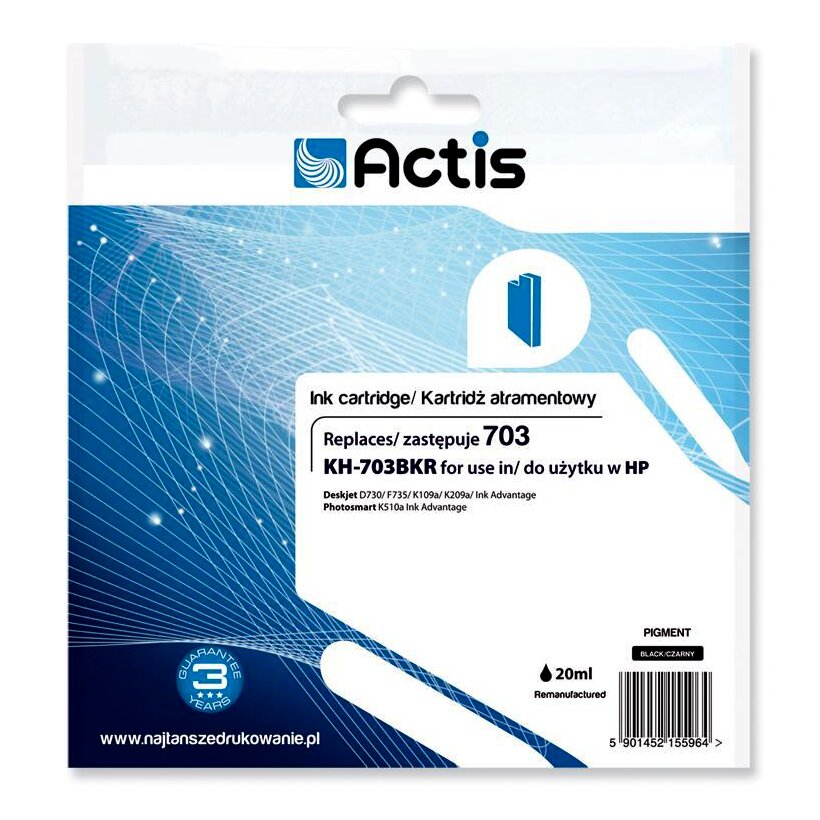 Az ACTIS kellékanyagokat olyan felhasználók számára hozták létre, akik költséghatékony megoldásokat keresnek a mindennapi nyomtatás során mind a munkahelyen, mind otthon. A fogyóeszközök egy vonzó ár és a magas minőség kombinációja, amit a folyamatos laboratóriumi vizsgálatok és a nemzetközi tanúsítványok is megerősítenek. Az ISO 9001 minősítés biztosítja, hogy a termékek a legmagasabb minőségűek, míg az ISO 14001 tanúsítvány az ACTION vállalat környezeti és társadalmi felelősségvállalását biztosítja.