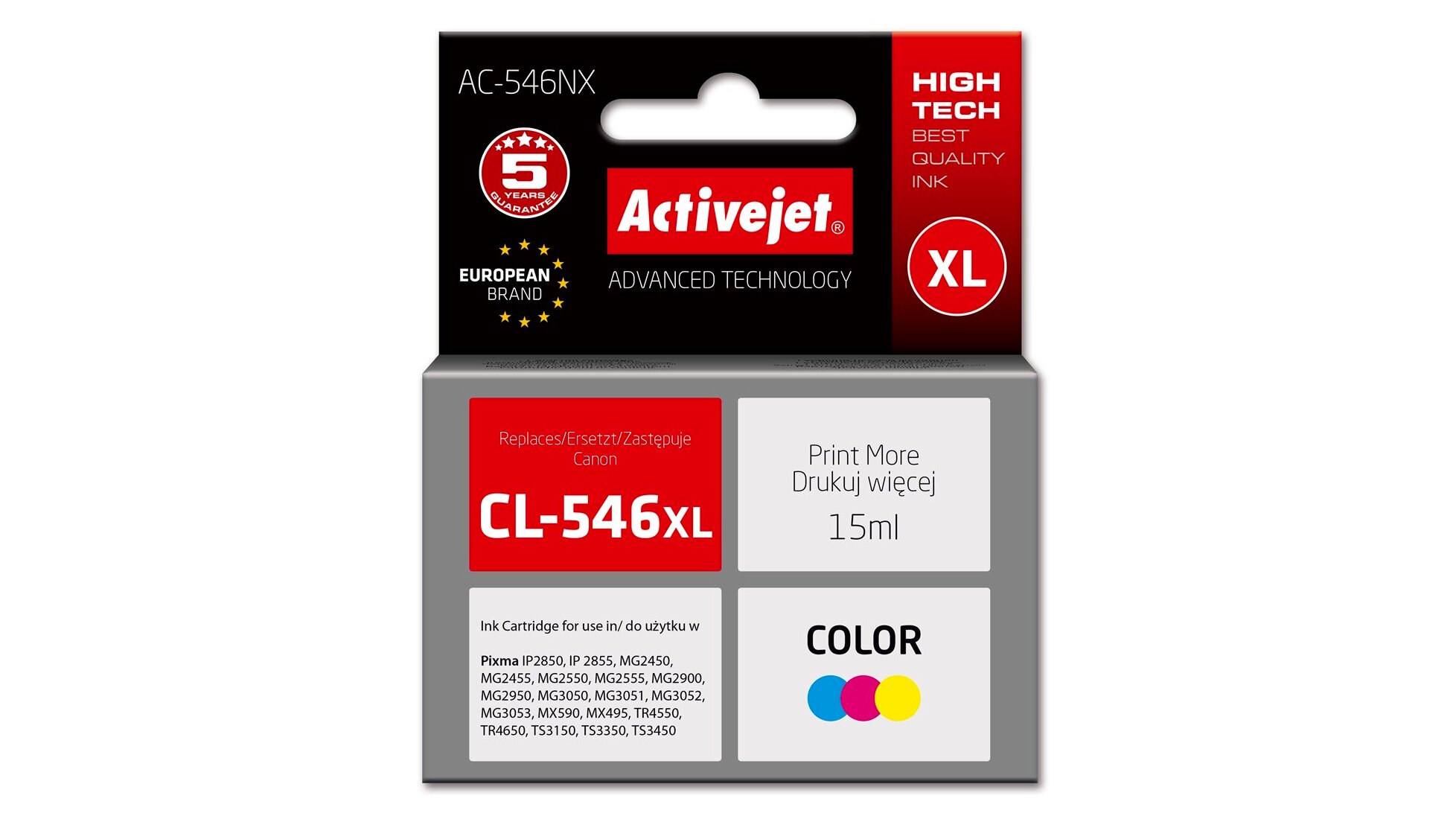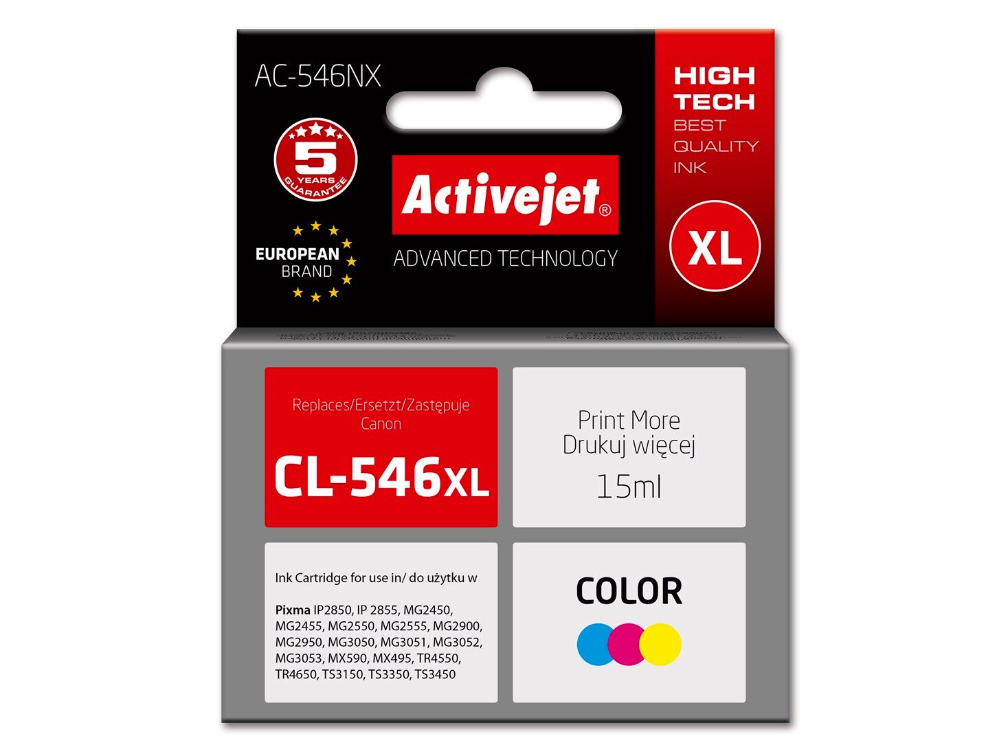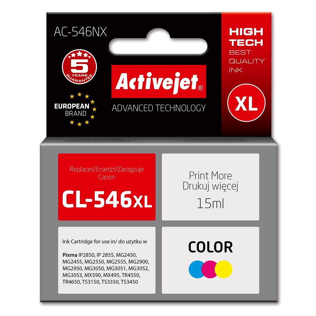Az ActiveJet AC-546NX utángyártott tintapatron tökéletes választás azok számára, akik kiváló minőségű nyomtatást szeretnének elérni megfizethető áron. Ez a patron a Canon nyomtatókhoz készült, és a Canon CL-546XL eredeti patron helyettesítésére szolgál. A cián, magenta és sárga színek kombinációjával élénk és élethű nyomatokat biztosít.