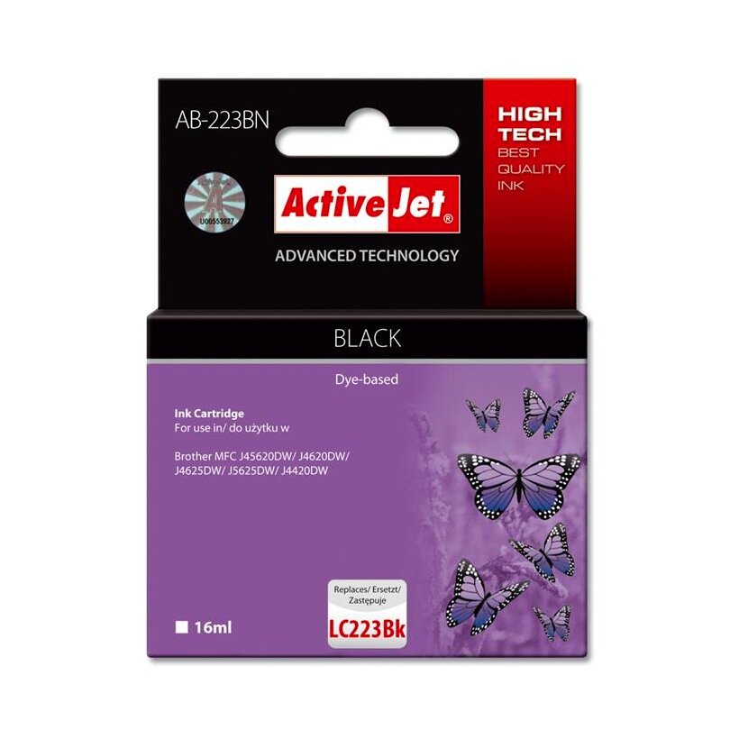 Az ActiveJet tintasugaras patronok tökéletes választás azoknak az ügyfeleknek, akik a legjobb nyomtatási minőséget igénylik. A tintapatronok a gyári mennyiségnél több tintát tartalmaznak, amellett ugyanolyan pontos színárnyalatot kínálnak, mint eredeti társaik. Az ActiveJet tintasugaras patronok a HP, a Lexmark, az Epson, a Brother és a Canon legnépszerűbb patronmodelljeinek kiváló alternatívájaként használhatók. Független és pártatlan külső ellenőrző szervezetek, mint a TUV Rheinland és BSI kísérik figyelemmel valamennyi ActiveJet patron gyártási folyamatát, ezalatt folyamatos minőség ellenőrzést végeznek. Az Activejet a lengyel tintasugaras nyomtató kellékek piacának vezetője. Tintapatronjaikkal professzionális nyomatok - fényképek, katalógusok, prezentációk, ajánlatok, stb. készíthetőek, emellett igényesen kivitelezett, lakkozott, UV álló akasztóval ellátott csomagolása tükrözi a minőségre való odafigyelést, kívül-belül egyaránt.