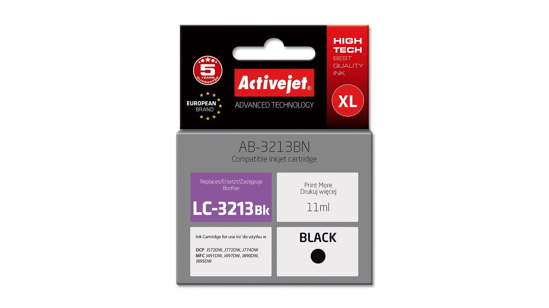 Az ActiveJet patronok tökéletes választás azoknak az ügyfeleknek, akik a legjobb nyomtatási minőséget igénylik. A tintapatronok a gyári mennyiségnél több tintát tartalmaznak, amellett ugyanolyan pontos színárnyalatot kínálnak, mint eredeti társaik. Az ActiveJet tintasugaras patronok a HP, a Lexmark, az Epson, a Brother és a Canon legnépszerűbb patronmodelljeinek kiváló alternatívájaként használhatók. A termékek kétféle gyártási eljárással készülnek: a Premium (teljesen felújított alkatrészekből épült) és a Supreme (új alkatrészekből készült). Független és pártatlan külső ellenőrző szervezetek, mint a TUV Rheinland és BSI kísérik figyelemmel valamennyi ActiveJet patron gyártási folyamatát, ezalatt folyamatos minőség ellenőrzést végeznek. Az Activejet a lengyel tintasugaras nyomtató kellékek piacának vezetője. Tintapatronjaikkal professzionális nyomatok - fényképek, katalógusok, prezentációk, ajánlatok, stb. készíthetőek, emellett igényesen kivitelezett, lakkozott, UV álló akasztóval ellátott csomagolása tükrözi a minőségre való odafigyelést, kívül-belül egyaránt.