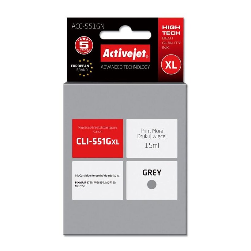 Az ActiveJet tintasugaras patronok tökéletes választás azoknak az ügyfeleknek, akik a legjobb nyomtatási minőséget igénylik. A tintapatronok a gyári mennyiségnél több tintát tartalmaznak, amellett ugyanolyan pontos színárnyalatot kínálnak, mint eredeti társaik. Az ActiveJet tintasugaras patronok a HP, a Lexmark, az Epson, a Brother és a Canon legnépszerűbb patronmodelljeinek kiváló alternatívájaként használhatók. Független és pártatlan külső ellenőrző szervezetek, mint a TUV Rheinland és BSI kísérik figyelemmel valamennyi ActiveJet patron gyártási folyamatát, ezalatt folyamatos minőség ellenőrzést végeznek. Az Activejet a lengyel tintasugaras nyomtató kellékek piacának vezetője. Tintapatronjaikkal professzionális nyomatok - fényképek, katalógusok, prezentációk, ajánlatok, stb. készíthetőek, emellett igényesen kivitelezett, lakkozott, UV álló akasztóval ellátott csomagolása tükrözi a minőségre való odafigyelést, kívül-belül egyaránt.