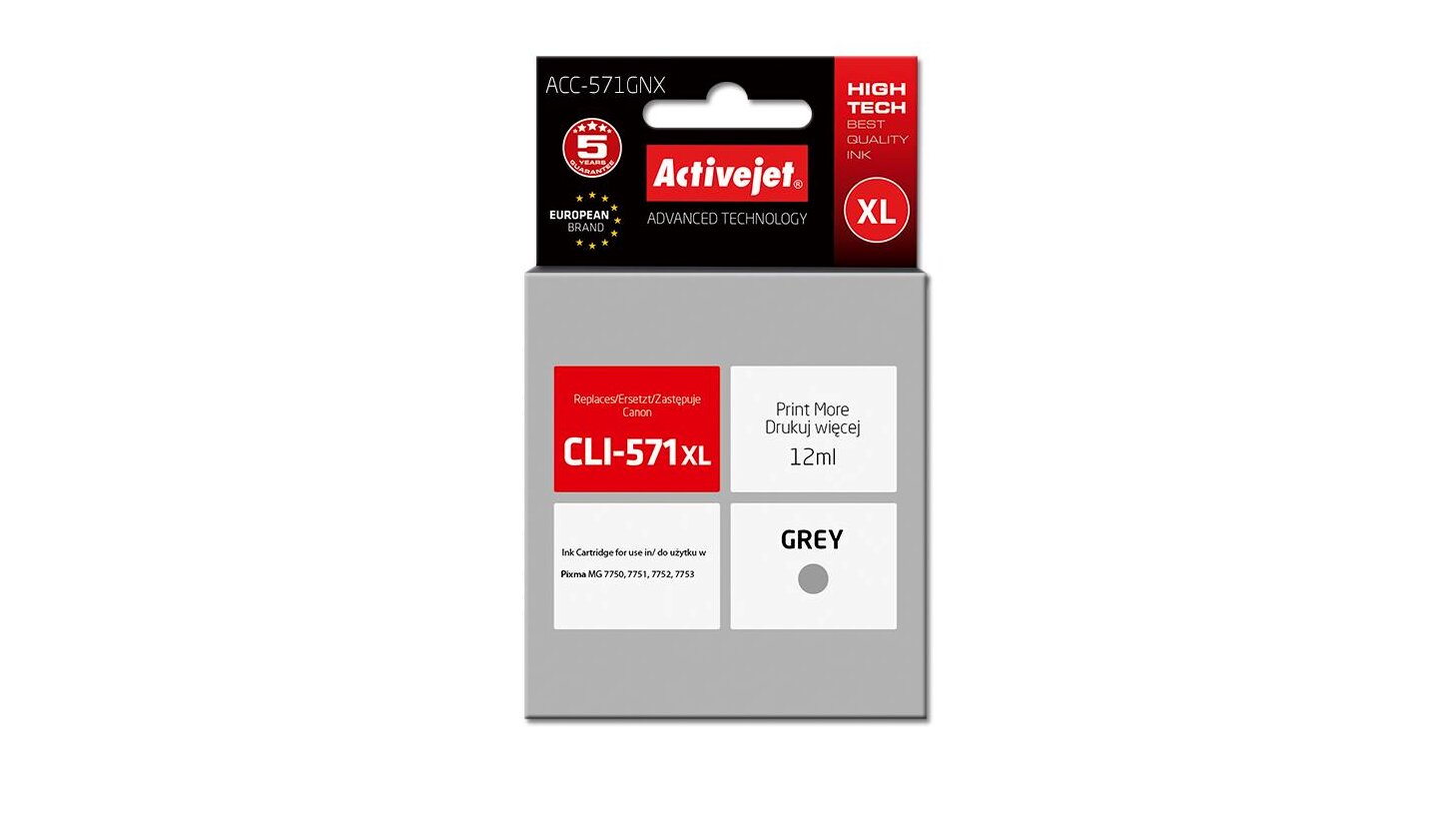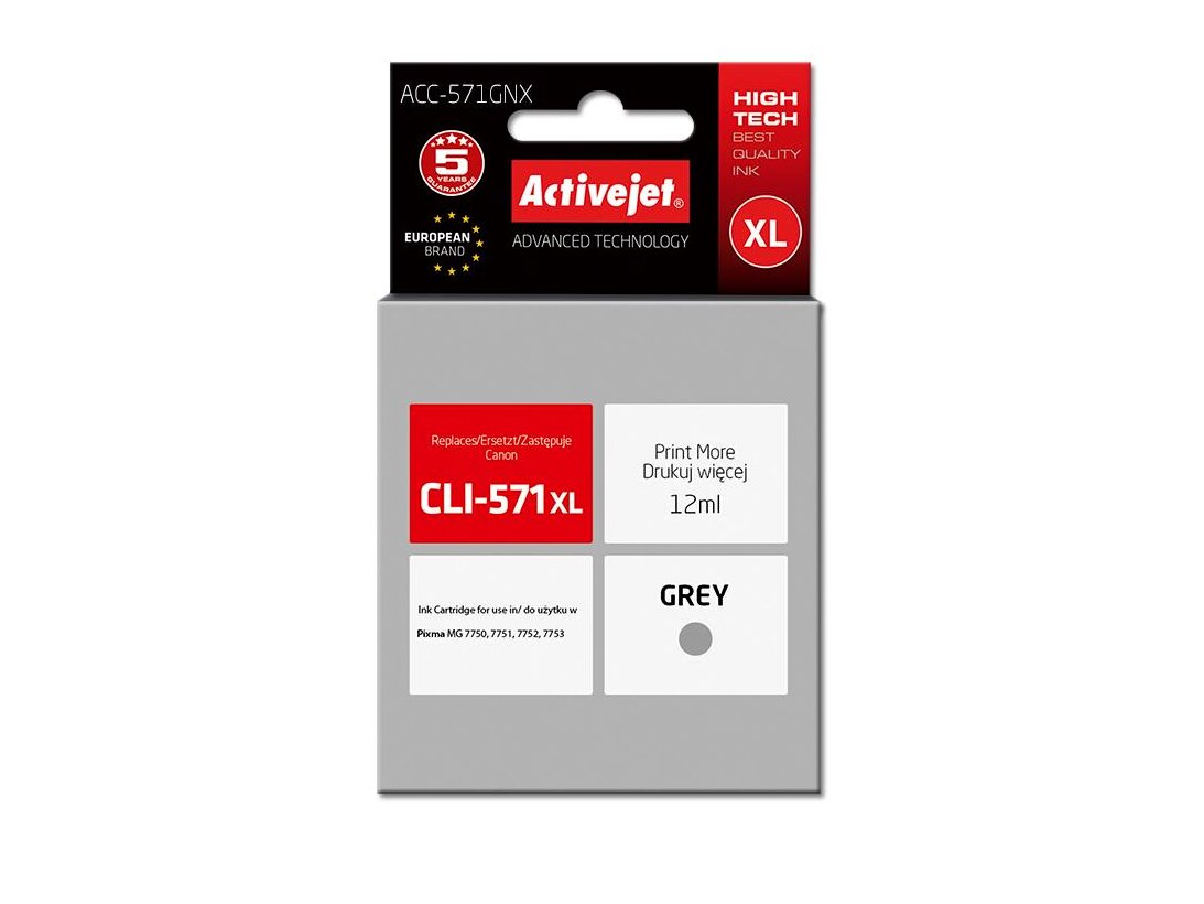 Az ActiveJet tintasugaras patronok tökéletes választás azoknak az ügyfeleknek, akik a legjobb nyomtatási minőséget igénylik. A tintapatronok a gyári mennyiségnél több tintát tartalmaznak, amellett ugyanolyan pontos színárnyalatot kínálnak, mint eredeti társaik. Az ActiveJet tintasugaras patronok a HP, a Lexmark, az Epson, a Brother és a Canon legnépszerűbb patronmodelljeinek kiváló alternatívájaként használhatók. Független és pártatlan külső ellenőrző szervezetek, mint a TUV Rheinland és BSI kísérik figyelemmel valamennyi ActiveJet patron gyártási folyamatát, ezalatt folyamatos minőség ellenőrzést végeznek. Az Activejet a lengyel tintasugaras nyomtató kellékek piacának vezetője. Tintapatronjaikkal professzionális nyomatok - fényképek, katalógusok, prezentációk, ajánlatok, stb. készíthetőek, emellett igényesen kivitelezett, lakkozott, UV álló akasztóval ellátott csomagolása tükrözi a minőségre való odafigyelést, kívül-belül egyaránt.
