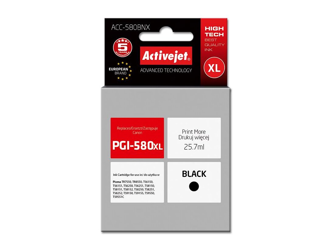 Az ActiveJet tintasugaras patronok tökéletes választás azoknak az ügyfeleknek, akik a legjobb nyomtatási minőséget igénylik. A tintapatronok a gyári mennyiségnél több tintát tartalmaznak, amellett ugyanolyan pontos színárnyalatot kínálnak, mint eredeti társaik. Az ActiveJet tintasugaras patronok a HP, a Lexmark, az Epson, a Brother és a Canon legnépszerűbb patronmodelljeinek kiváló alternatívájaként használhatók. Független és pártatlan külső ellenőrző szervezetek, mint a TUV Rheinland és BSI kísérik figyelemmel valamennyi ActiveJet patron gyártási folyamatát, ezalatt folyamatos minőség ellenőrzést végeznek. Az Activejet a lengyel tintasugaras nyomtató kellékek piacának vezetője. Tintapatronjaikkal professzionális nyomatok - fényképek, katalógusok, prezentációk, ajánlatok, stb. készíthetőek, emellett igényesen kivitelezett, lakkozott, UV álló akasztóval ellátott csomagolása tükrözi a minőségre való odafigyelést, kívül-belül egyaránt.