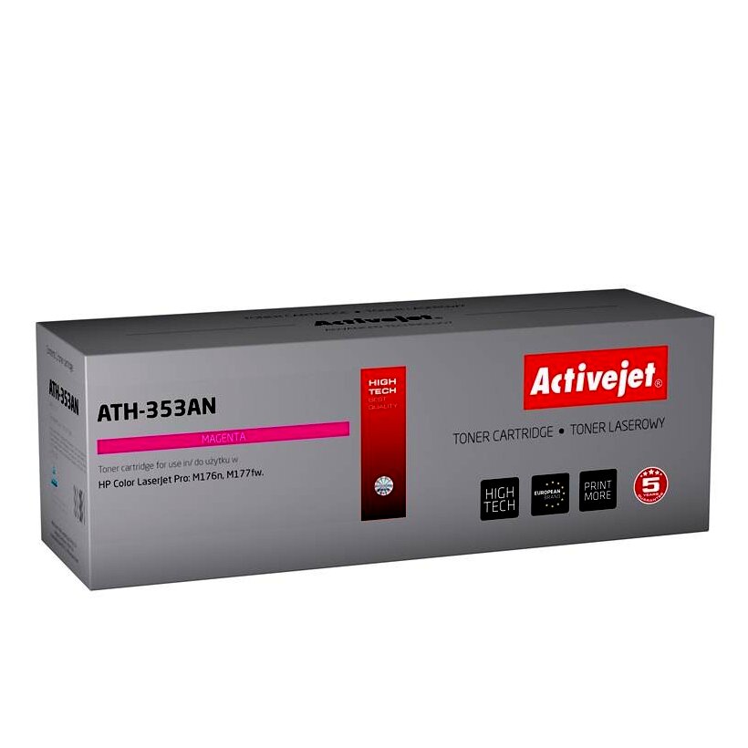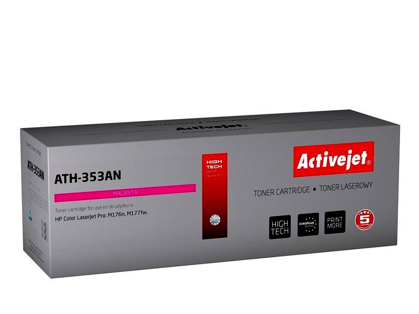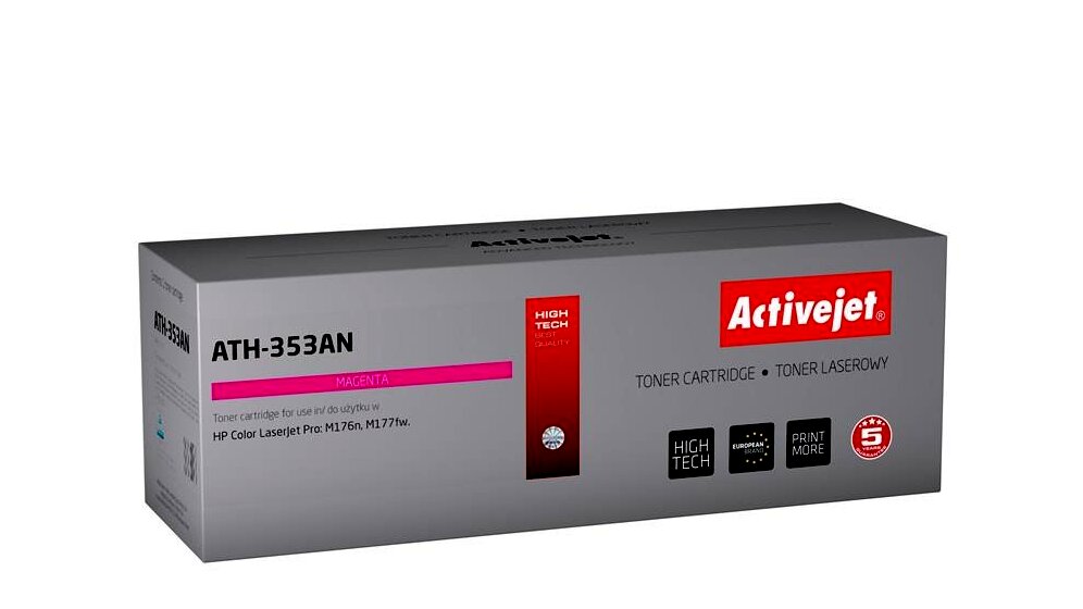 Az ActiveJet festékkazetta kiváló választás mindenki számára, aki minőségi lézernyomtatást szeretne elérni. Az ActiveJet termékek jól ismertek teljesítményükről és kiváló minőségükről. A fekete festékkazetták rendkívül magas minőségű nyomatokat biztosítanak, emellett a színes festékkazetták meggyőzően pontos színárnyalat visszaadására képesek. Minden festékkazettát szigorúan teszteltek a minőségük miatt, ami azt jelenti, hogy biztonságosak és problémamentesen használhatók. Kulcsfontosságú alkatrészeik több megbízható forrásból származnak, beleértve az európai és japán gyártókat is. Az Activejet a lézernyomtató kellékek lengyel piacának vezetője.