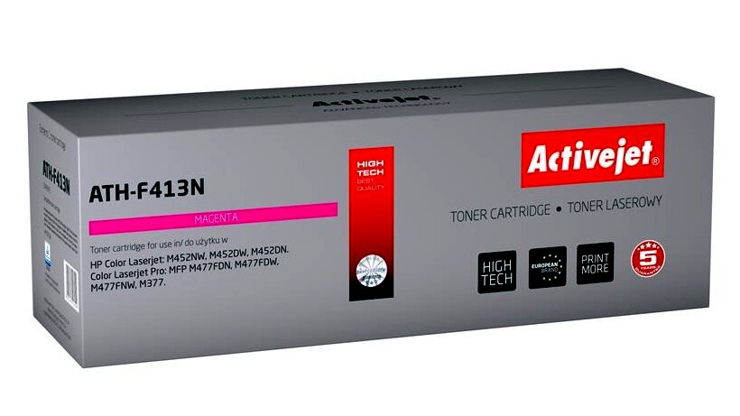 Az ActiveJet festékkazetta kiváló választás mindenki számára, aki minőségi lézernyomtatást szeretne elérni. Az ActiveJet termékek jól ismertek teljesítményükről és kiváló minőségükről. A fekete festékkazetták rendkívül magas minőségű nyomatokat biztosítanak, emellett a színes festékkazetták meggyőzően pontos színárnyalat visszaadására képesek. Minden festékkazettát szigorúan teszteltek a minőségük miatt, ami azt jelenti, hogy biztonságosak és problémamentesen használhatók. Kulcsfontosságú alkatrészeik több megbízható forrásból származnak, beleértve az európai és japán gyártókat is. Az Activejet a lézernyomtató kellékek lengyel piacának vezetője.