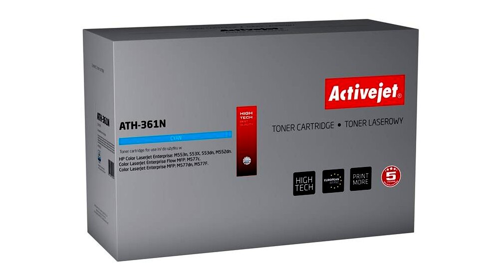 Az ActiveJet festékkazetta kiváló választás mindenki számára, aki minőségi lézernyomtatást szeretne elérni. Az ActiveJet termékek jól ismertek teljesítményükről és kiváló minőségükről. A fekete festékkazetták rendkívül magas minőségű nyomatokat biztosítanak, emellett a színes festékkazetták meggyőzően pontos színárnyalat visszaadására képesek. Minden festékkazettát szigorúan teszteltek a minőségük miatt, ami azt jelenti, hogy biztonságosak és problémamentesen használhatók. Kulcsfontosságú alkatrészeik több megbízható forrásból származnak, beleértve az európai és japán gyártókat is. Az Activejet a lézernyomtató kellékek lengyel piacának vezetője.