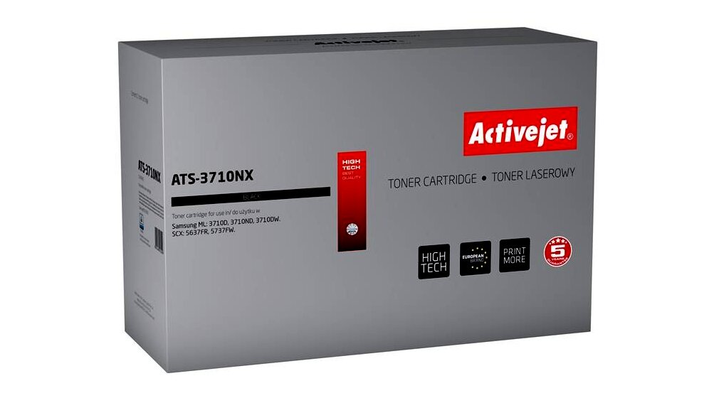 Az ActiveJet festékkazetta kiváló választás mindenki számára, aki minőségi lézernyomtatást szeretne elérni. Az ActiveJet termékek jól ismertek teljesítményükről és kiváló minőségükről. A fekete festékkazetták rendkívül magas minőségű nyomatokat biztosítanak, emellett a színes festékkazetták meggyőzően pontos színárnyalat visszaadására képesek. Minden festékkazettát szigorúan teszteltek a minőségük miatt, ami azt jelenti, hogy biztonságosak és problémamentesen használhatók. Kulcsfontosságú alkatrészeik több megbízható forrásból származnak, beleértve az európai és japán gyártókat is. Az Activejet a lézernyomtató kellékek lengyel piacának vezetője.