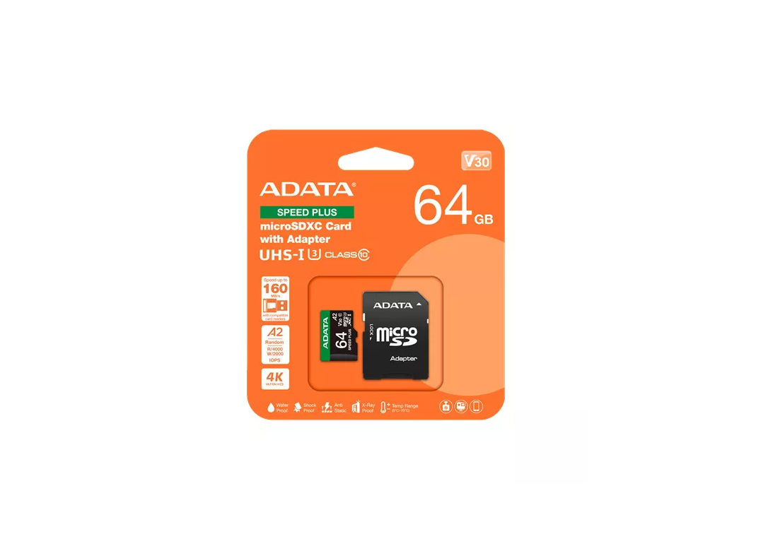 A nagy adatátviteli sebességű kialakításnak köszönhetően ideális 4K (és nagy bitrátájú Full HD) videók rögzítéséhez akciókamerákban vagy drónokban, illetve sorozatfelvételek készítéséhez digitális fényképezőgépekben. A V30 és U3 minősítés garantálja, hogy a kártya folyamatos adatfolyam mellett is stabil írási sebességet tud tartani, így elkerülhetők a kimaradó képkockák vagy felvételi hibák.