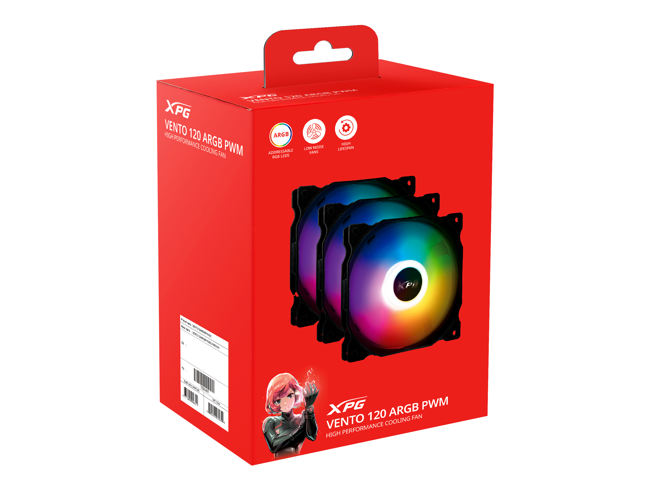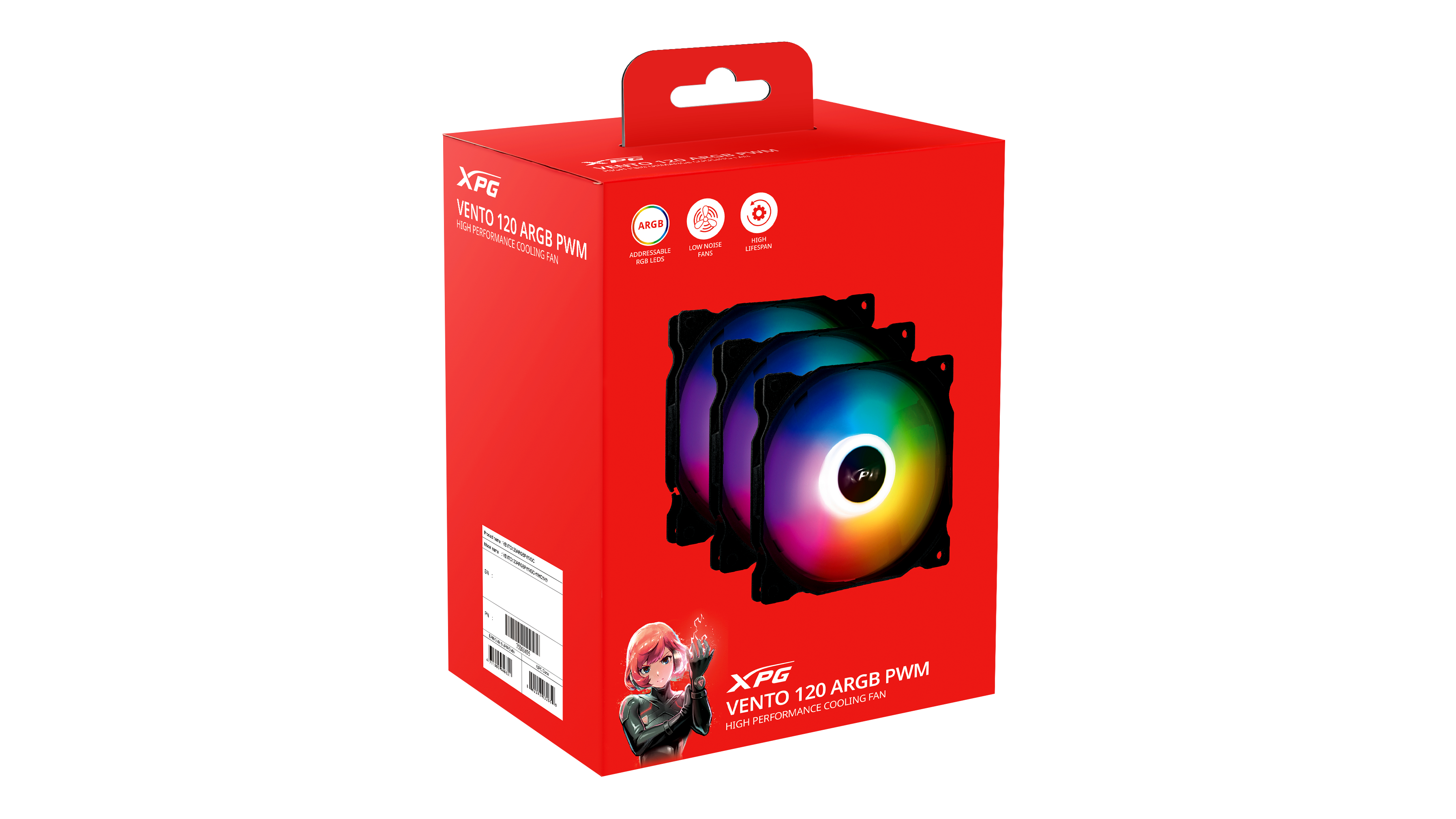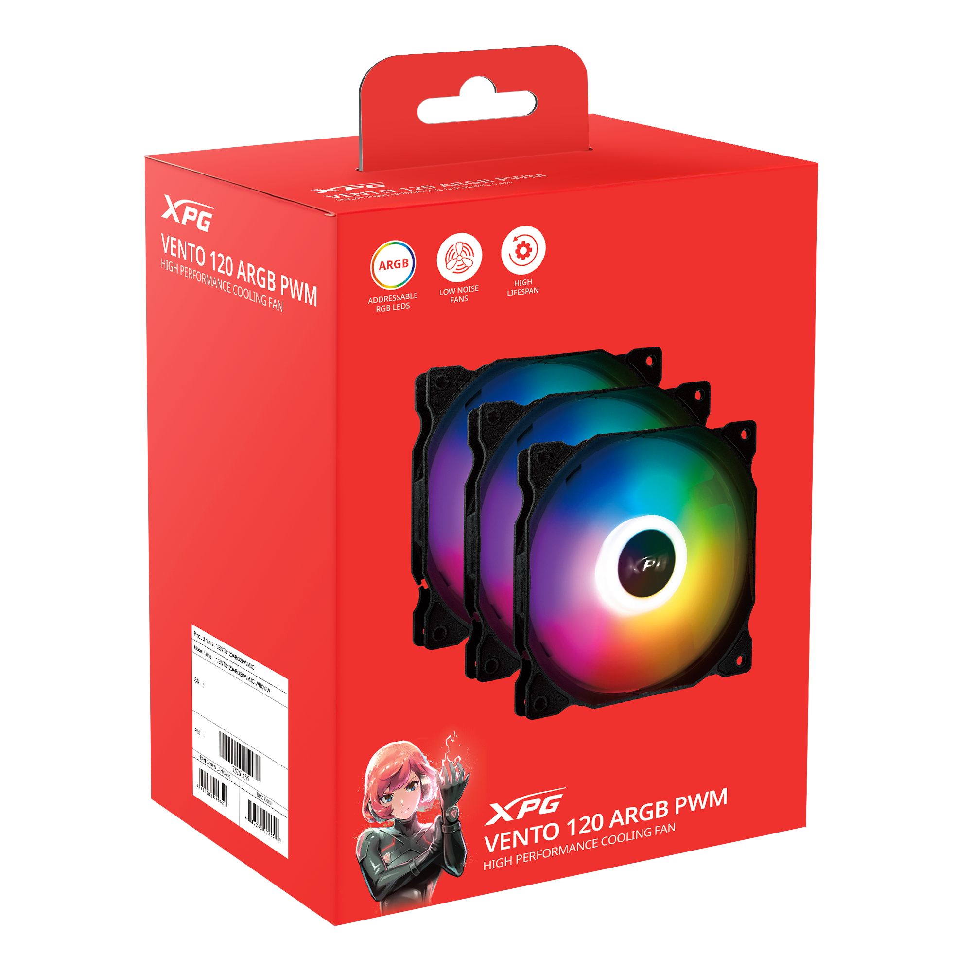 Az XPG VENTO 120 ARGB ventilátor elérhető egyes és három darabos csomagolásban is. Ezek biztosítják a rugalmasságot, hogy a hűtési igényeinek megfelelően válasszon. Emelje magasabb szintre számítógépe hűtését az XPG VENTO 120 ARGB ventilátorokkal!