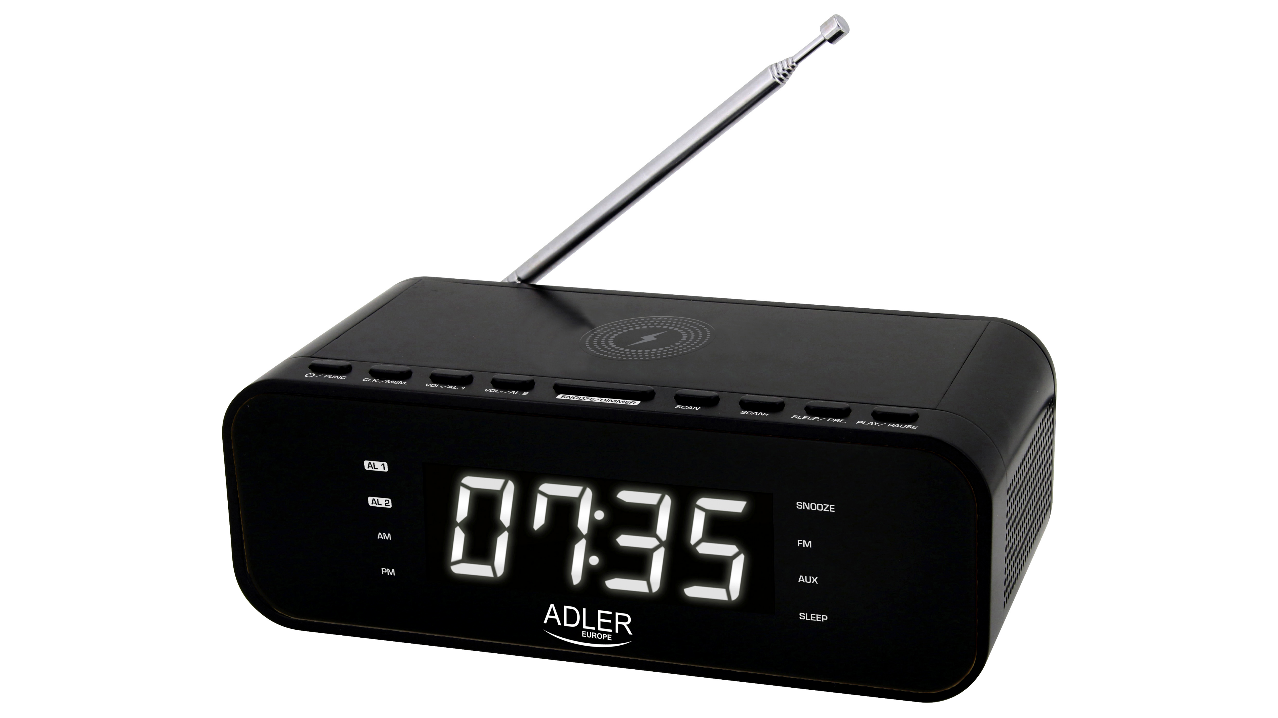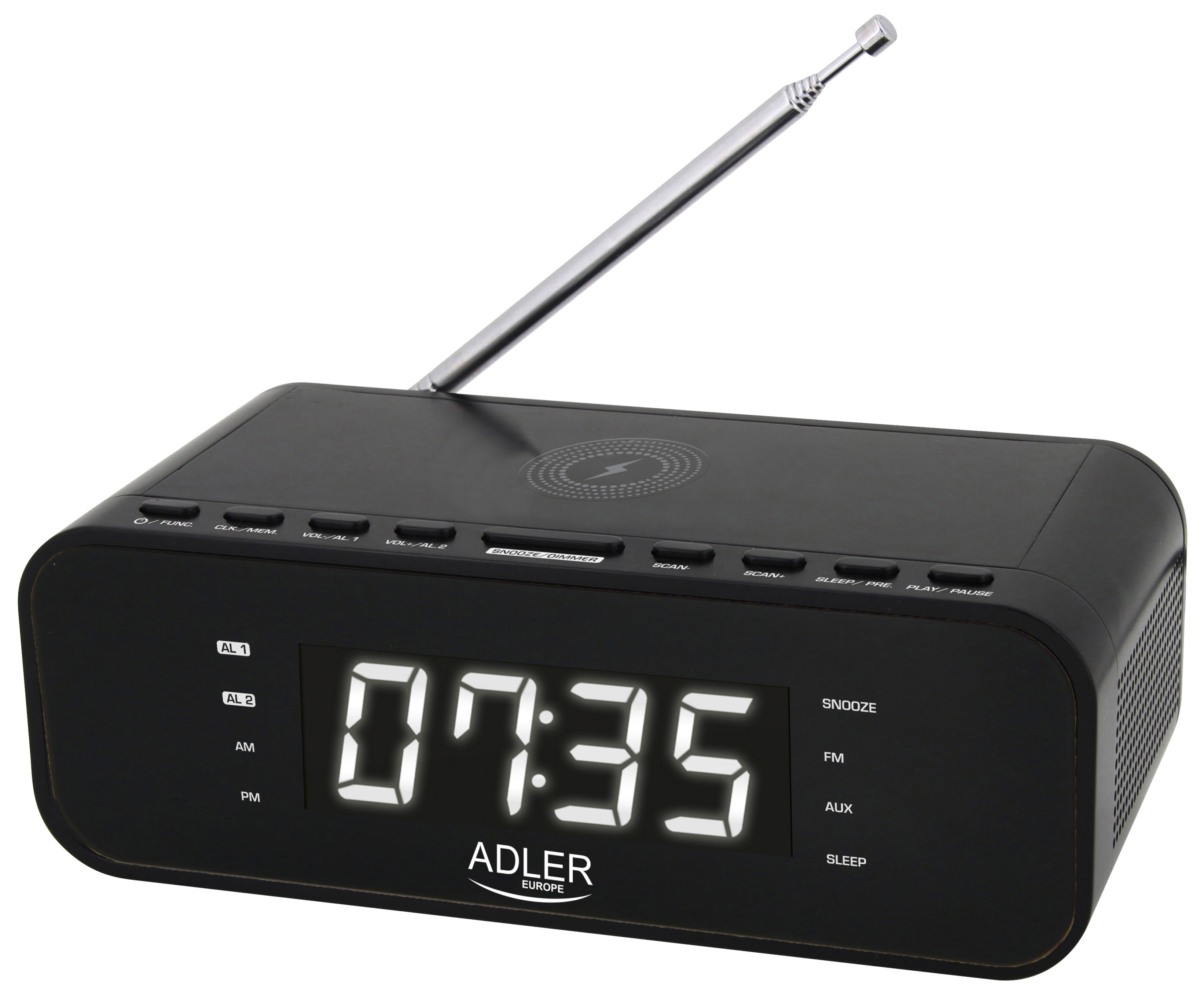 Esztétikus és hangos ébresztőóra vezeték nélküli töltővel és FM rádióval. A megjelenített idő tökéletesen látható a tiszta kijelzőnek köszönhetően. Az ébresztőóra hálózati áramról működik, és beépített akkumulátorral rendelkezik a memória tartalékolásához. A Bluetooth 5.0 technológia és az AUX bemenet, valamint a beépített nagy teljesítményű sztereó hangszórók lehetővé teszik, hogy szinte bármilyen forrásból hallgathassa kedvenc zenéjének kristályos hangjait. Az ébresztőóra emellett beépített rádióval is rendelkezik, amelybe akár 30 állomást is beprogramozhat.