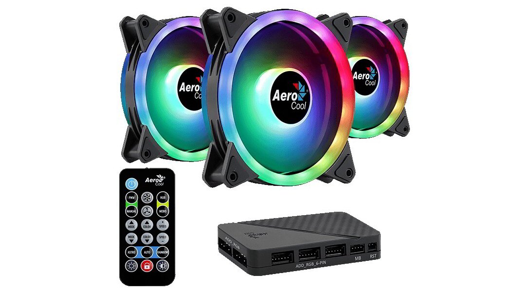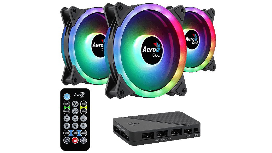 - 3 db Duo 12 ventilátorral, 1 db H66F RGB vezérlő hubbal és 1 db távirányítóval