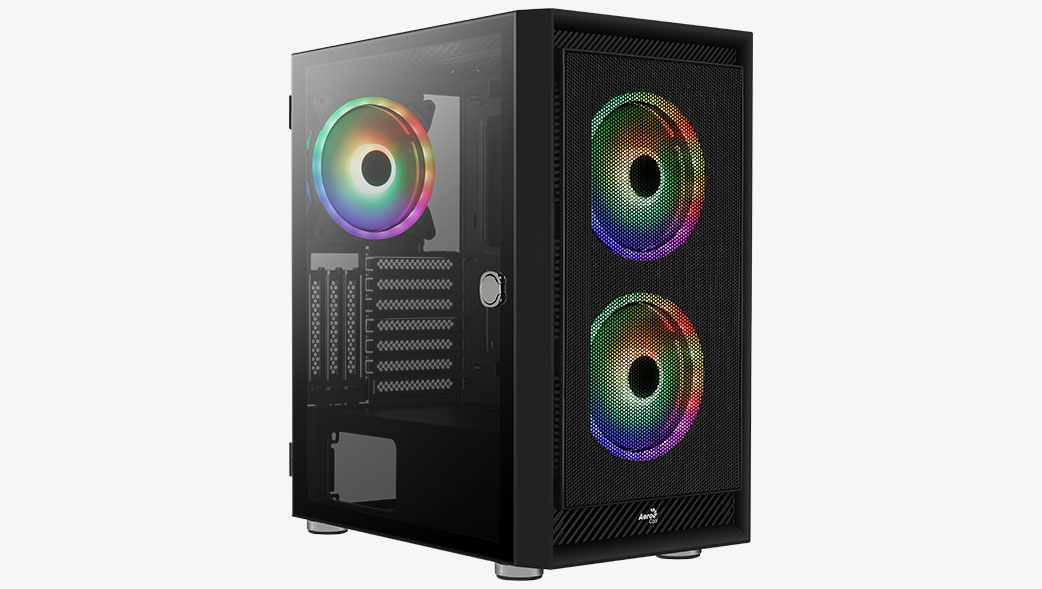 A hálós elülső panel kialakítású, nagy teljesítményű középső toronyház lehetővé teszi a megnövelt légáramlást és az első LED-ventilátorok megtekintését. Edzett üvegből készült, teljes oldalsó panel kényelmes, csuklós mechanizmussal és fogantyúval lehetővé teszi a könnyű nyitást és zárást, miközben bemutatja a ház belsejét.