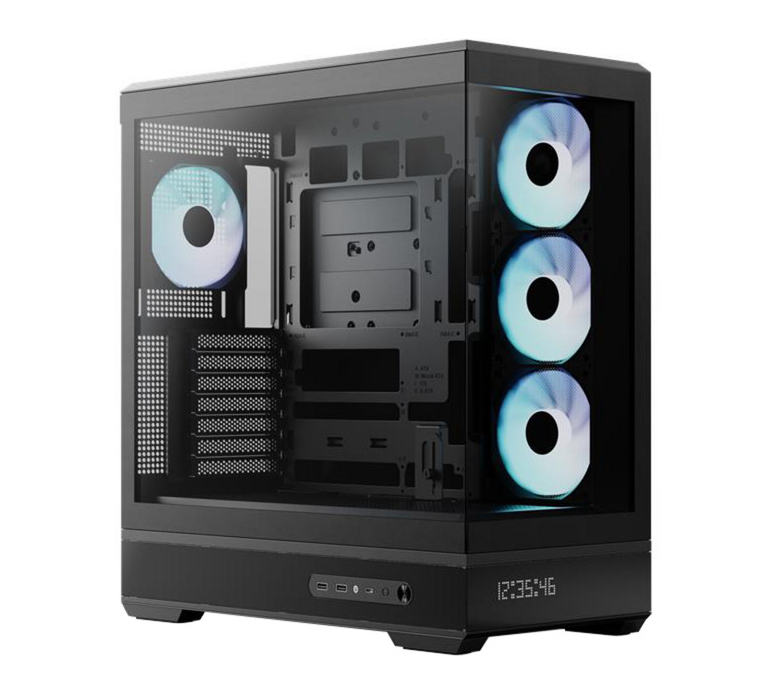 • Oldalsó panel: 3× 120 mm fordított ARGB PWM ventilátor előre beépítve – közvetlen légáramlás a VGA és alaplap felé.