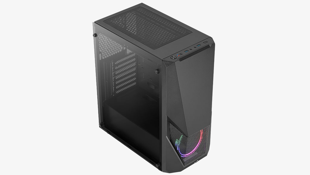 Nagy teljesítményű közepes torony ház merész és stílusos elülső kialakítással, amely erőteljes elemet juttat a játékbeállításokhoz. A háló elülső panelje lehetővé teszi a nagyobb szellőzést és az első LED-ventilátor megtekintését. 12 cm-es FRGB ventilátorokkal van felszerelve, rögzített RGB világítással a statikus fényhatás érdekében. Teljesen edzett üveg oldalpanel a ház belsejének bemutatásához.