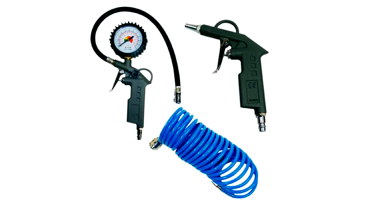 Aerotec sűrített levegő készlet, alkalmas 6 liter feletti kompresszorokhoz.