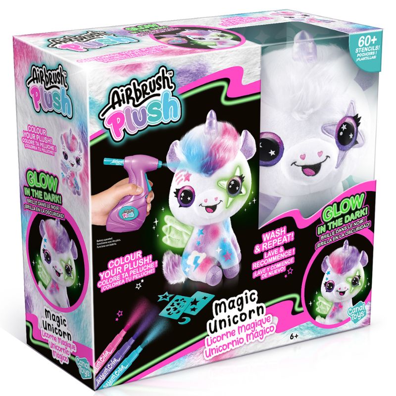 A hófehér Airbrush plüss állatok csak egy jó barátra vágynak, aki színt visz a mindennapjaikba! Az alkotás menete egyszerű: a kiválasztott, színes festékfilctollat bele kell helyezni a festékszóróba, majd indulhat is a móka! A plüss unikornist kedvükre színezhetik a gyerekek, a sablonok segítségével pedig izgalmas mintákkal dobhatják fel a bundáját. Játék után a plüss könnyedén lemosható vízzel, így másnap új stílussal indulhat a nap.