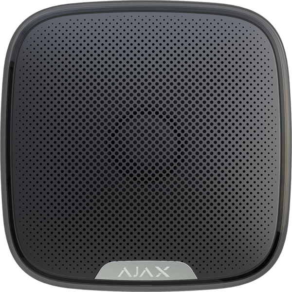 Az Ajax StreetSiren egy kültéri, fényjelzéssel is ellátott, 85 és 113 dB hangszint között állítható vezeték nélküli sziréna.