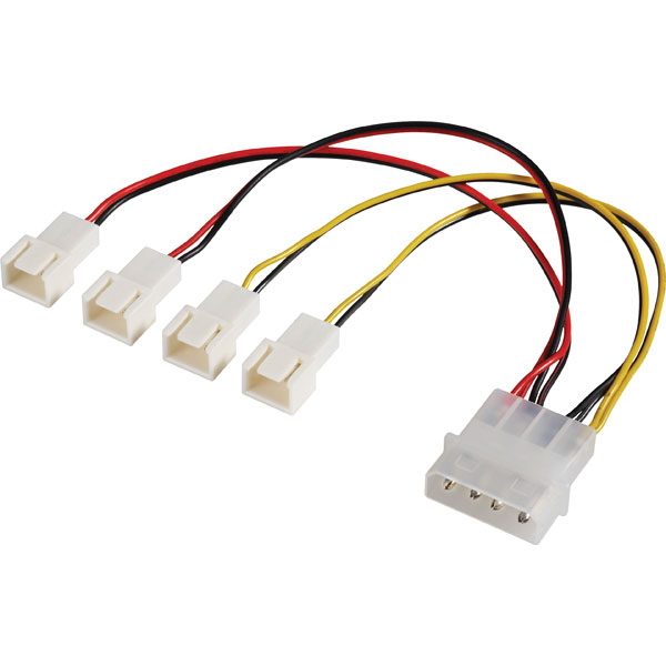 4 db 3-pin Molex kimenettel rendelkezik, a tápegységre pedig 1 db 4-pin Molex apával csatlakozik. Az adapter kábel teljes hossza 15 cm.