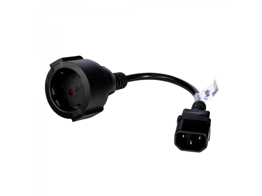 A kábel UPS C14 csatlakozóval és a szabványos schuko aljzattal. Lehetővé teszi az olyan eszközök csatlakoztatását, amelyek tipikus hálózati csatlakozóval rendelkeznek, ami különösen hasznos a C14 aljzatokkal ellátott vészhelyzeti tápegységeknél.