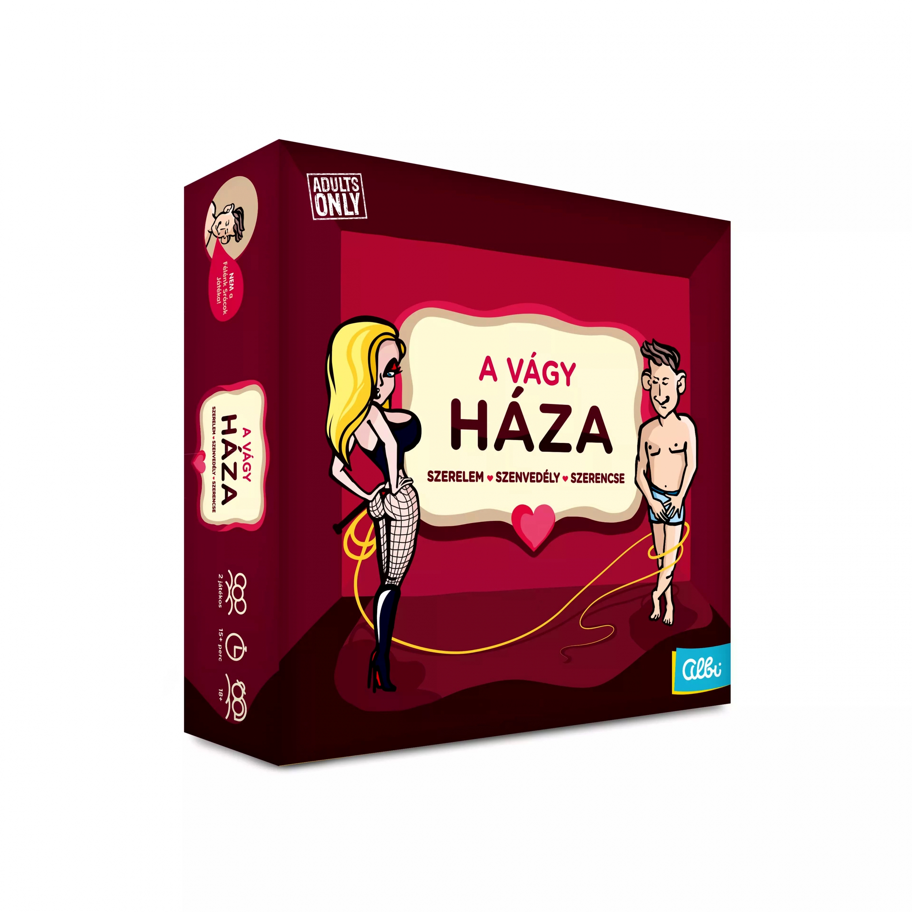 • Ajánlott korosztály: 18+ • Játékosok száma: 2 fő • Játékidő: kb. 45–90 perc • Tematika: romantikus, erotikus, szerepjátékos • Funkció: kommunikációt és intimitást fejlesztő páros játék • Lakást ábrázoló játéktábla több helyiséggel • Változatos feladat-, akció- és italmezők • Szerepjáték karakterkártyák (pl. Félénk Lány, Tigris stb.) • Vágyölő figura, mint nehezítő ellenfél • Anyagok: karton (doboz, tábla), papír és karton (játékelemek) • Csomagolás mérete: 6 × 25 × 25 cm • Gyártó: Albi