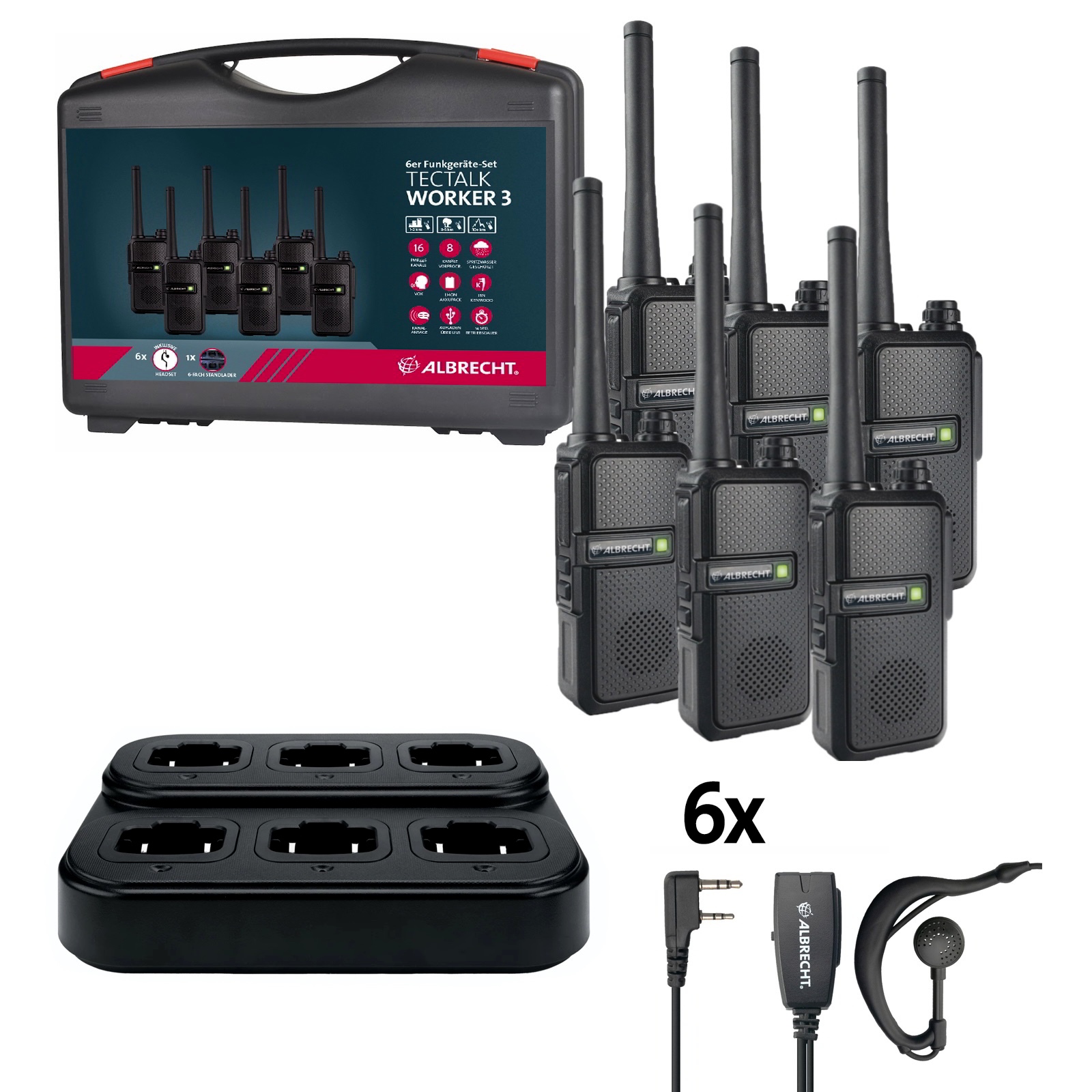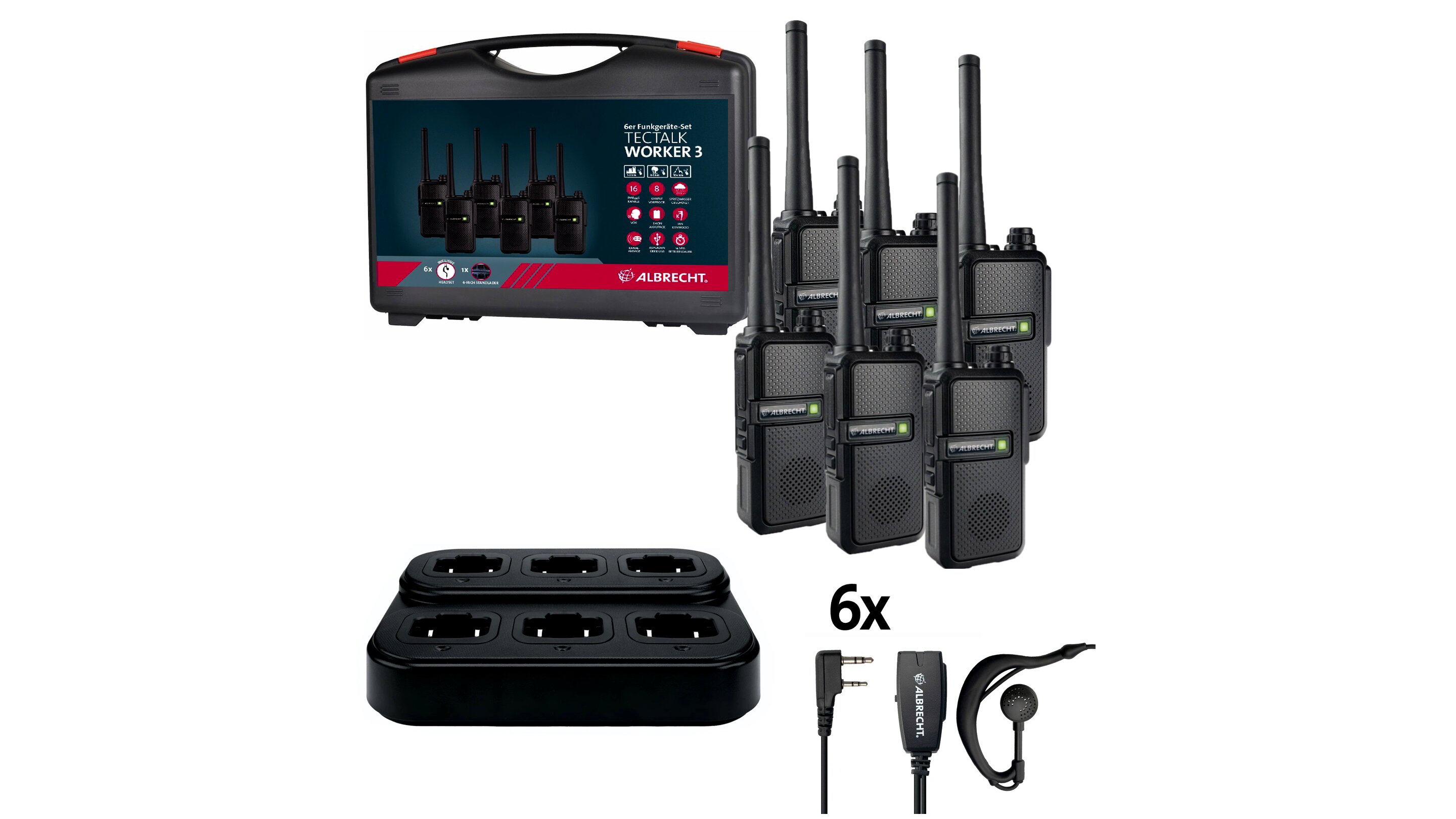 Albrecht Tectalk Worker 3 PMR446 Walkie Talkie Készlet 10 km hatótávval (6 db) - Fekete