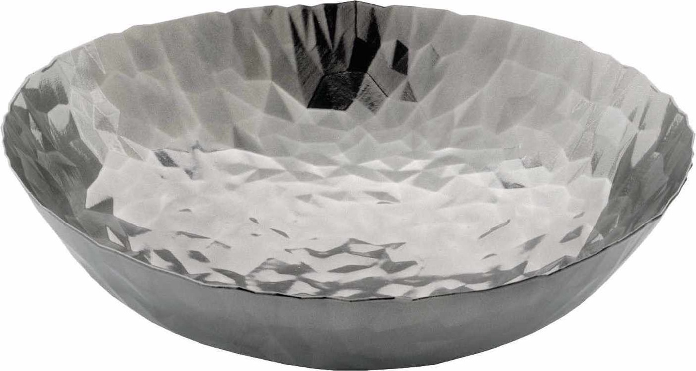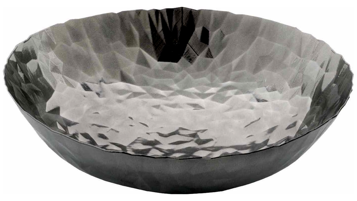 Ezt a darabot Claudia Raimondo tervezte. Az ötletes, modern préselési eljárásnak köszönhetően az acéllap itt dekoratív formává válik. Maga a fazettázás határozza meg a tárgyak formáját: Tágasak, nyitottak, pontos perem nélkül, és a fényvisszaverődések játékával nemesfémből készült, kézzel kovácsolt műtárgyakra emlékeztetnek. A textúra a digitális világból származó hátterekre emlékeztet; a design meghatározhatatlanságával való játékban az acél valami áramló, természetes, szilárd anyaggá kristályosodott anyagként értelmeződik át.