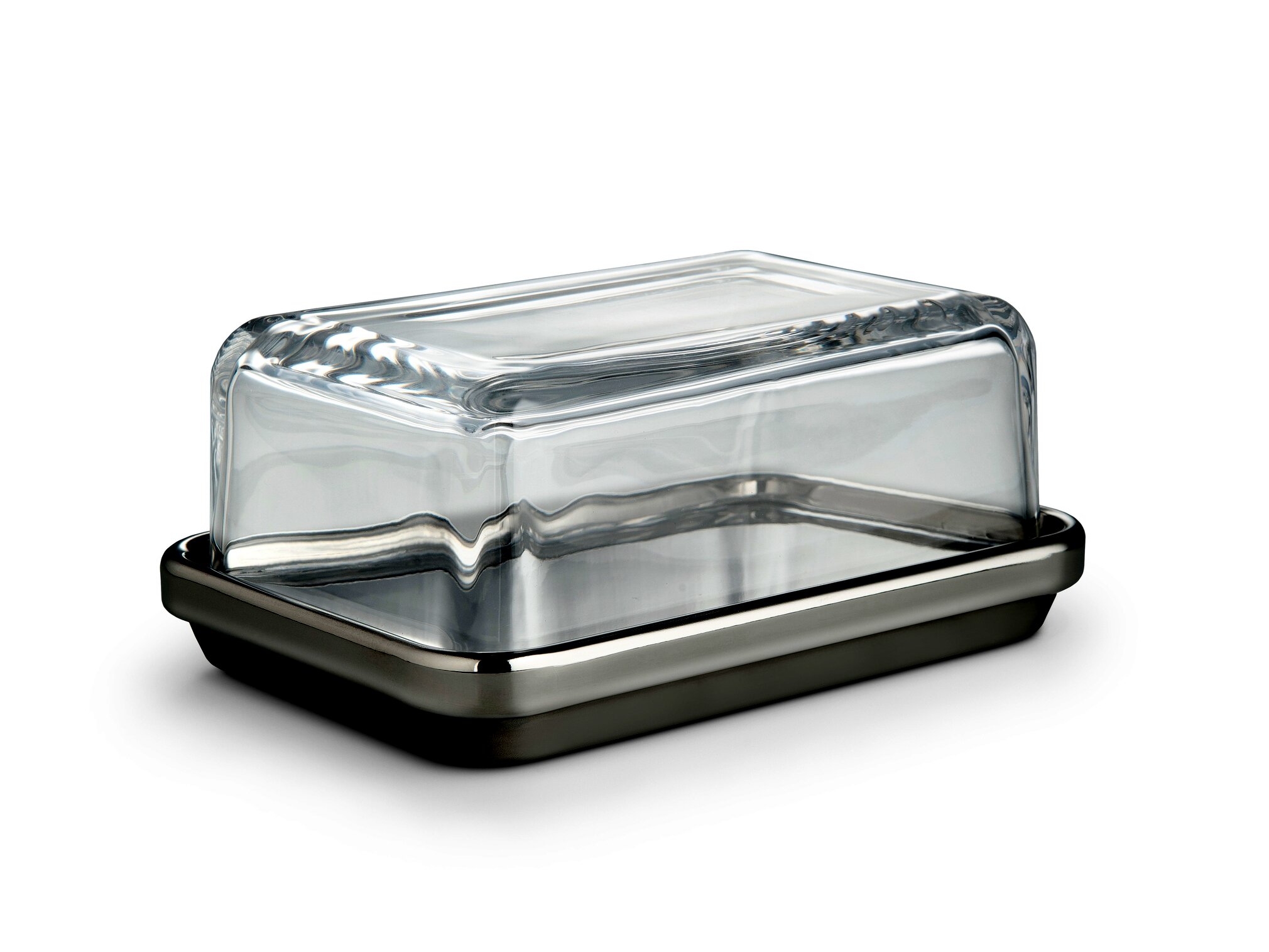 Alessi ES03 Butterdose Rozsdamentes Acél Vajtartó Üvegfedővel - Átlátszó / Ezüst