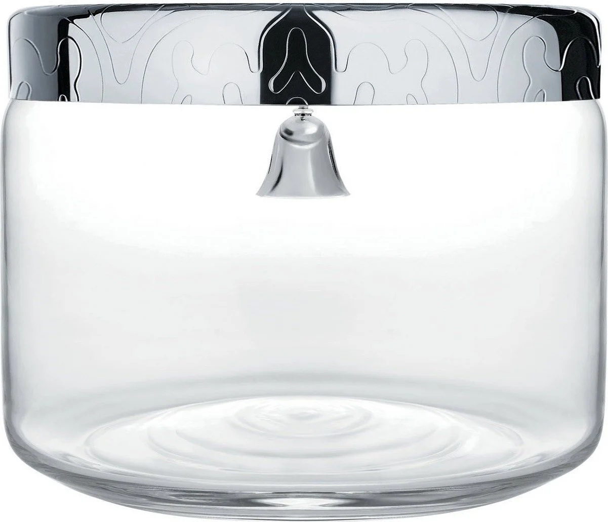 A jellegzetes "keksz" formájú üvegedényt a kollekcióra jellemző barokk díszítéssel ellátott rozsdamentes acélfedéllel látták el. Érdekes dizájnelem a fedél aljára erősített csengő, amely azonnal figyelmezteti a tulajdonost a benne tárolt kekszekre, ha azok "beletörnek".