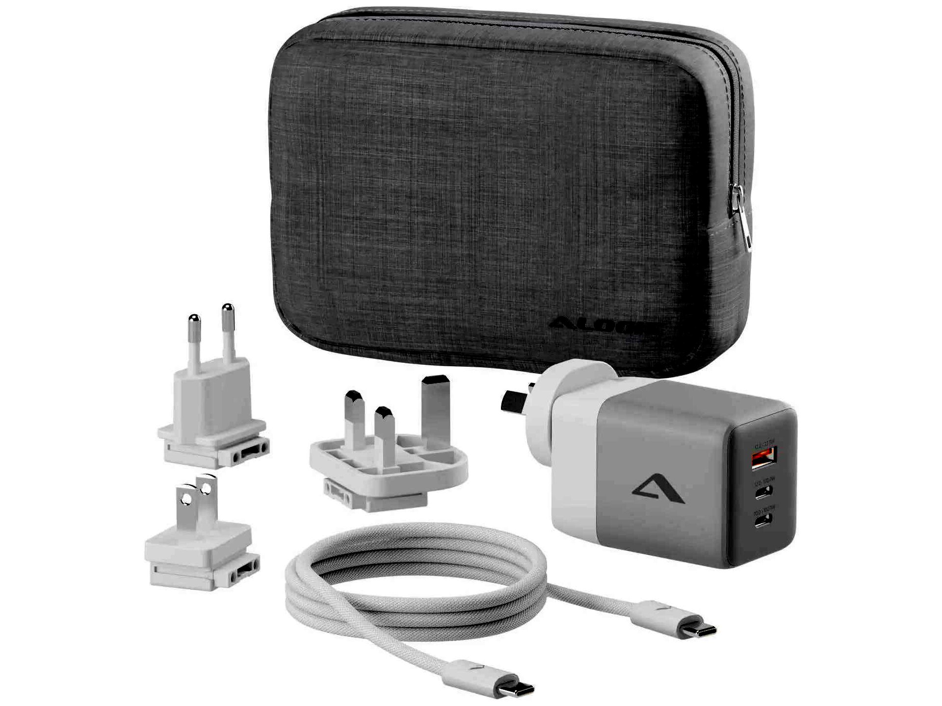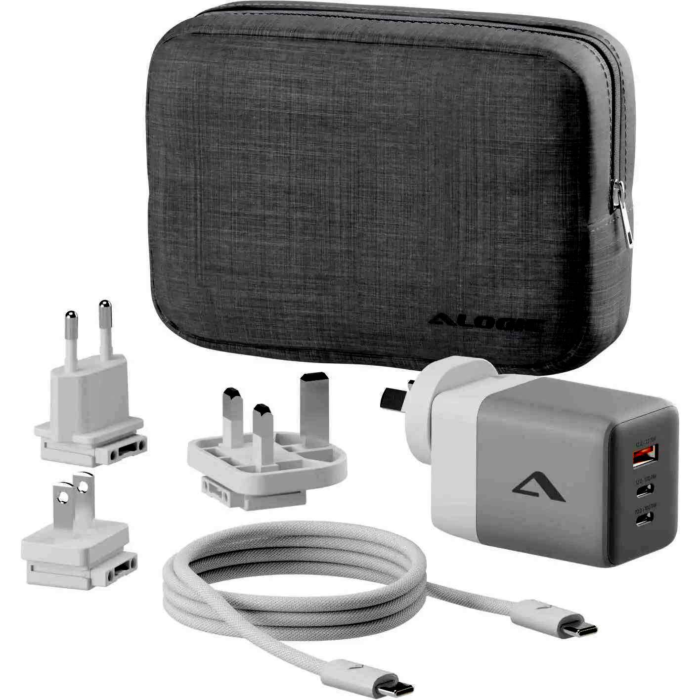 Alogic WCM3X100G USB-A / 2x USB-C Hálózati Utazó Gyorstöltő Adapter 100W + USB-C Kábel 2m - Fehér
