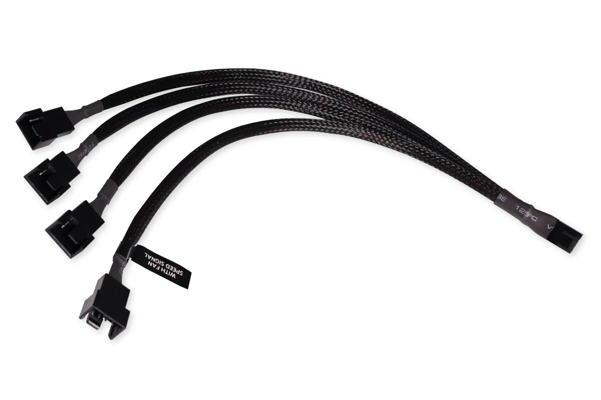 - Csatlakozók: 1x 4-Pin (férfi) csatlakozó az alaplap felé, 4x 4-Pin (női) ventilátorcsatlakozók