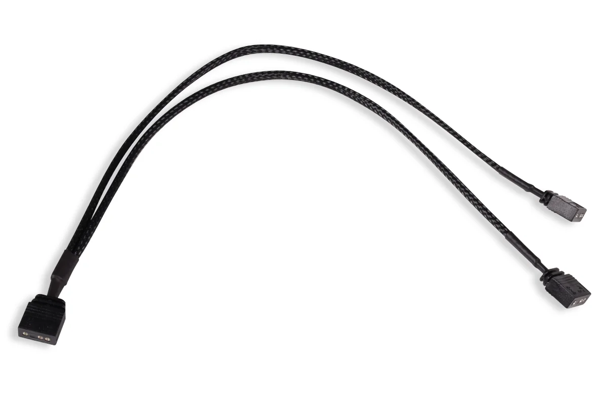 - Hatékony elrendezés: Az Y-elosztó segítségével egyszerre két aRGB elem csatlakoztatható egyetlen vezérlőhöz, így például több világítást vagy ventilátort is egyszerre működtethetünk.