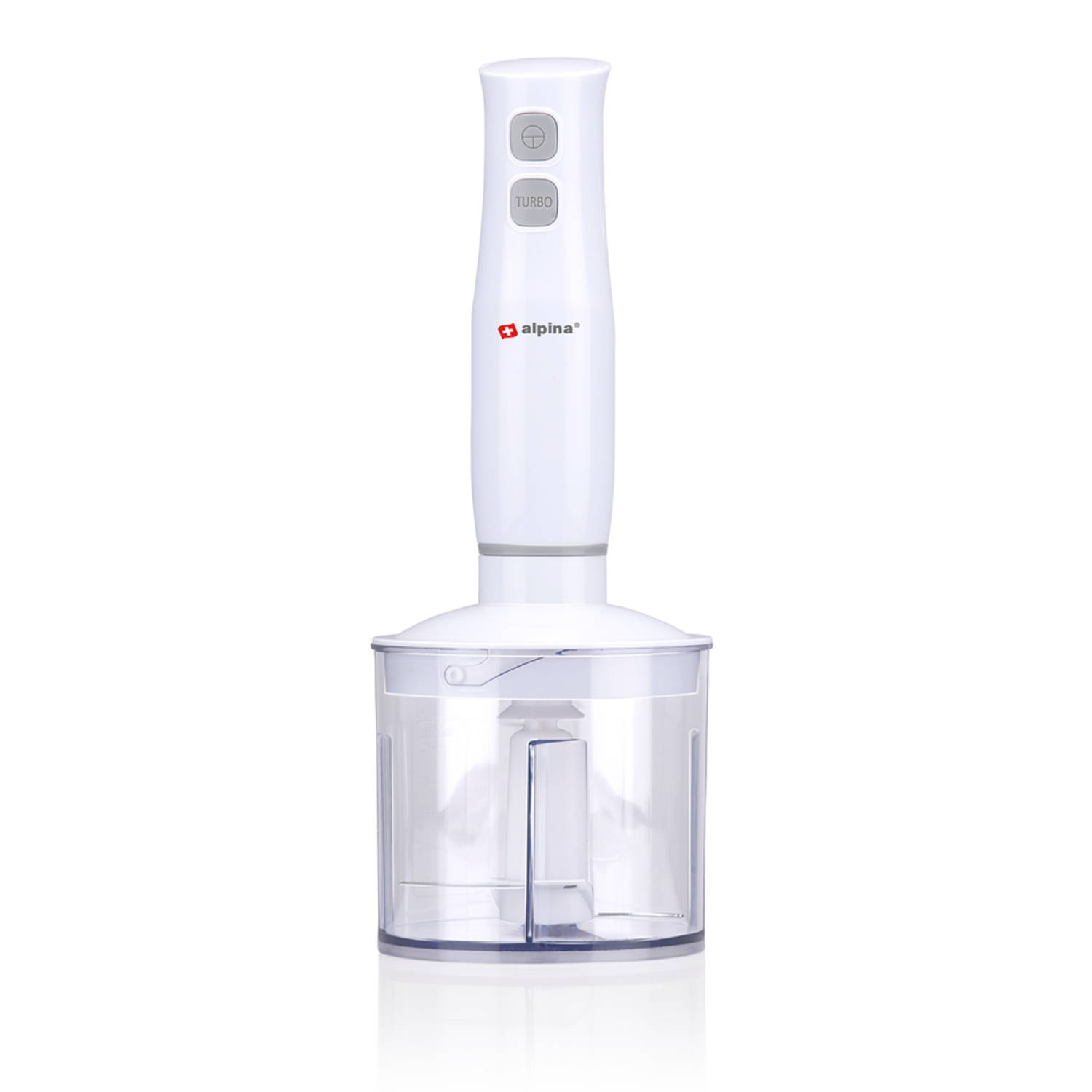 Aprítsuk, pürésítsük, turmixoljuk és keverjük össze; mindezt megteheti ezzel a fehér Alpina botmixerrel. A botmixerrel egyszerűen pürésíthet gyümölcsöt és zöldséget. A mellékelt habverővel könnyedén habbá verheti a tojásfehérjét vagy a tejszínhabot. Használja az aprítót hús aprítására, fokhagymapüré vagy apróra vágott hagyma elkészítésére. 500ml-es aprító tállal.