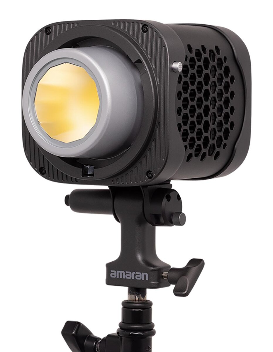 • Vezérlés: fizikai kezelőfelület, Amaran mobilapp (NFC-s párosítás), opcionális DMX USB‑C adapter