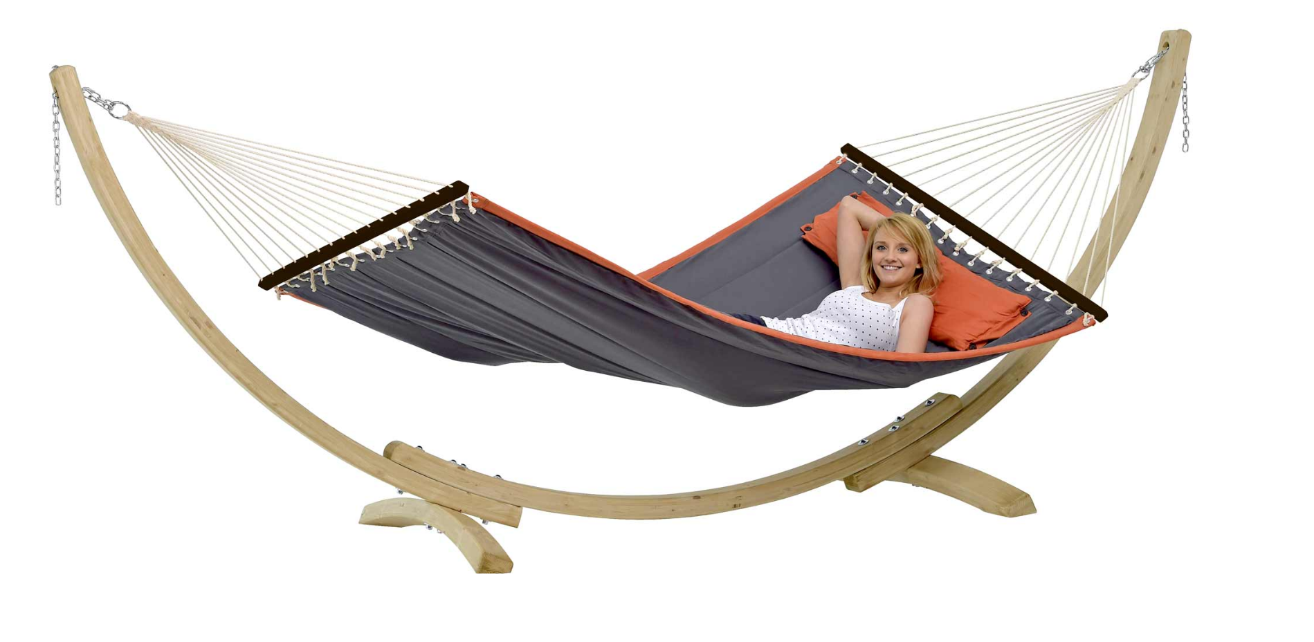 - A függőágy keretet gondosan kézzel készítették európai fenyőből, amely időjárásálló