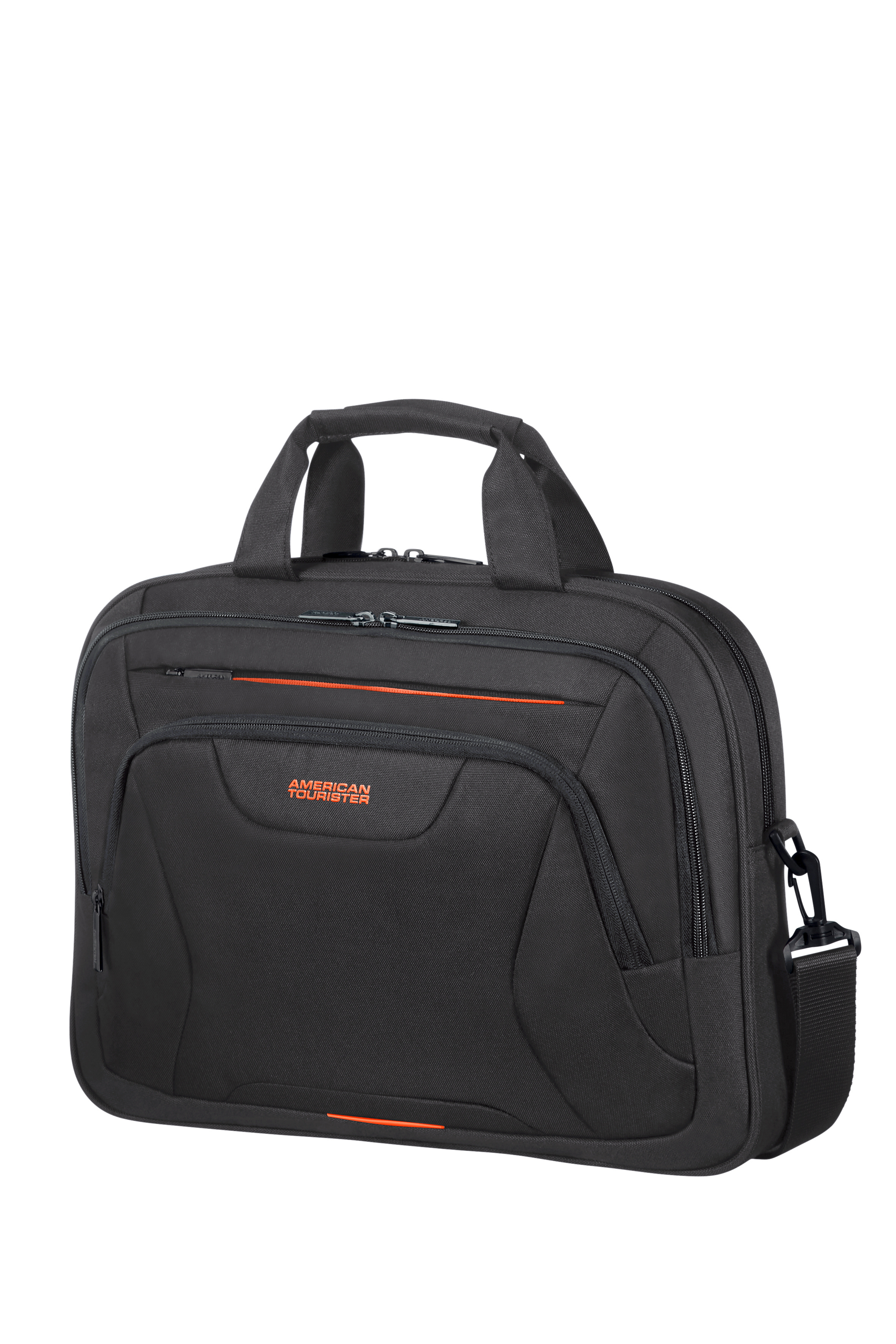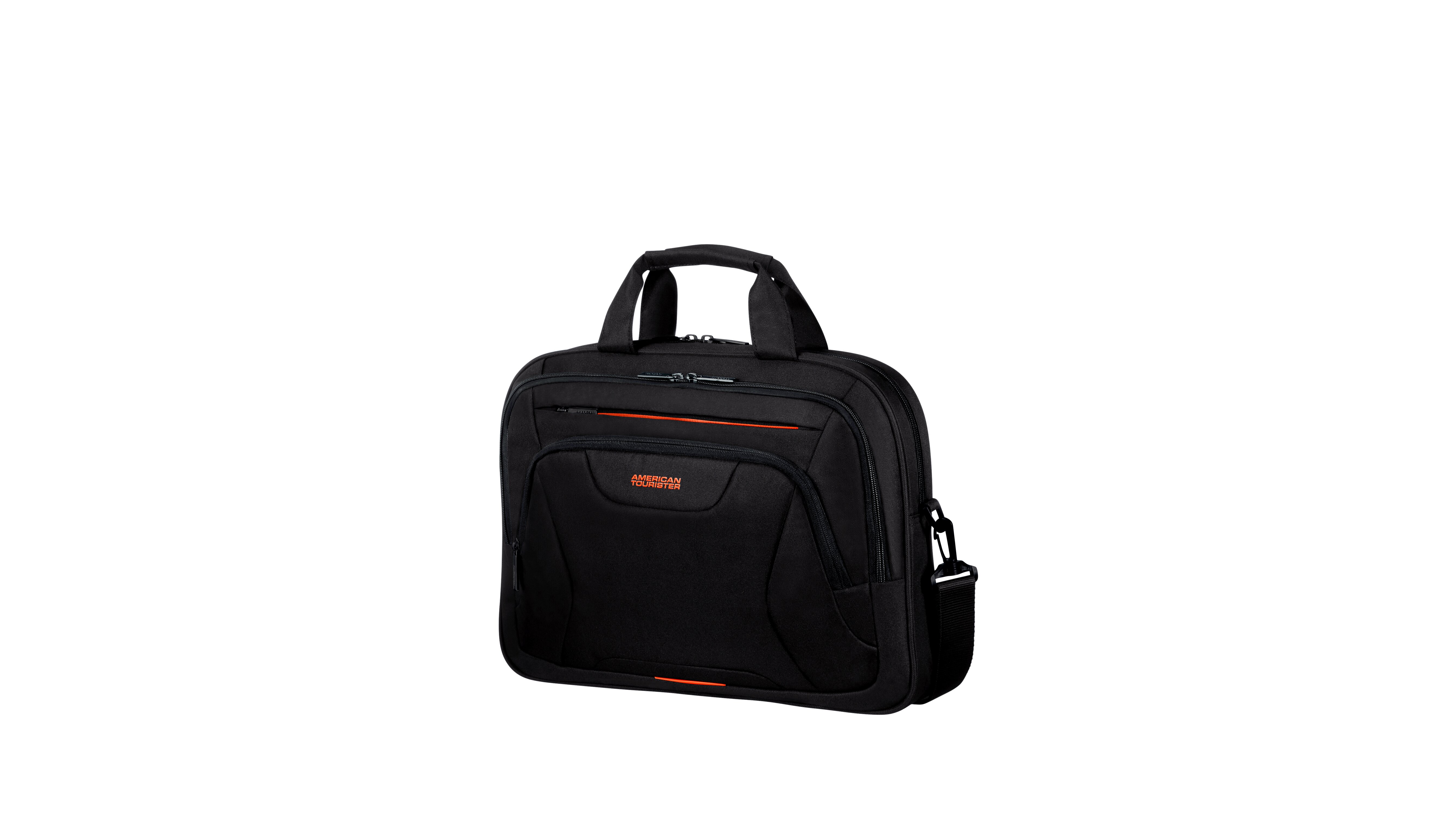 American Tourister puhafedeles laptop táska, két felső fogantyú, egy elülső cipzáros zseb tablet rekesszel, egy cipzáros zseb laptop és írat rekesszel. Hátsó zseb a bőröndhöz való rögzítéséhez. Űrtartalom: 15 L.