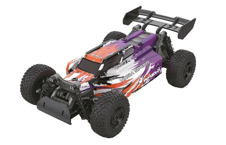 A készlet tartalmaz egy modern 2,4 GHz-es adót, valamint a működéshez szükséges AA Mignon elemeket is. A gumiabroncsok nagy tapadású gumikeverékből készülnek, és a lengéscsillapítóknak köszönhetően a terepjáró beltéri és kültéri használatra is alkalmas.
