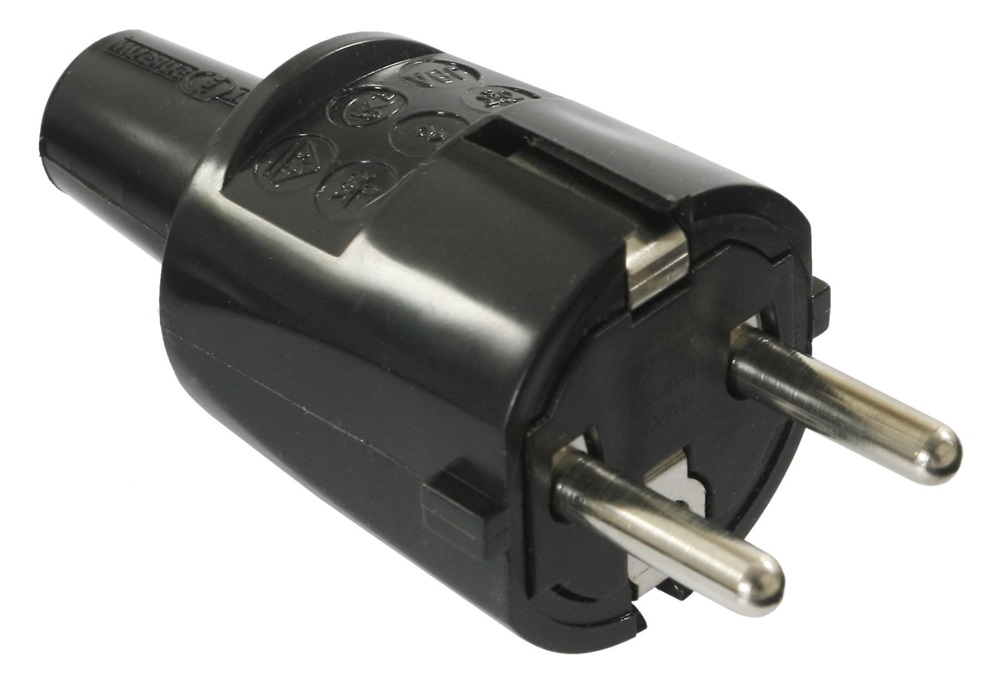 Anco 321211 16A 250V IP20 földelt PVC dugvilla vezeték védővel - Fekete