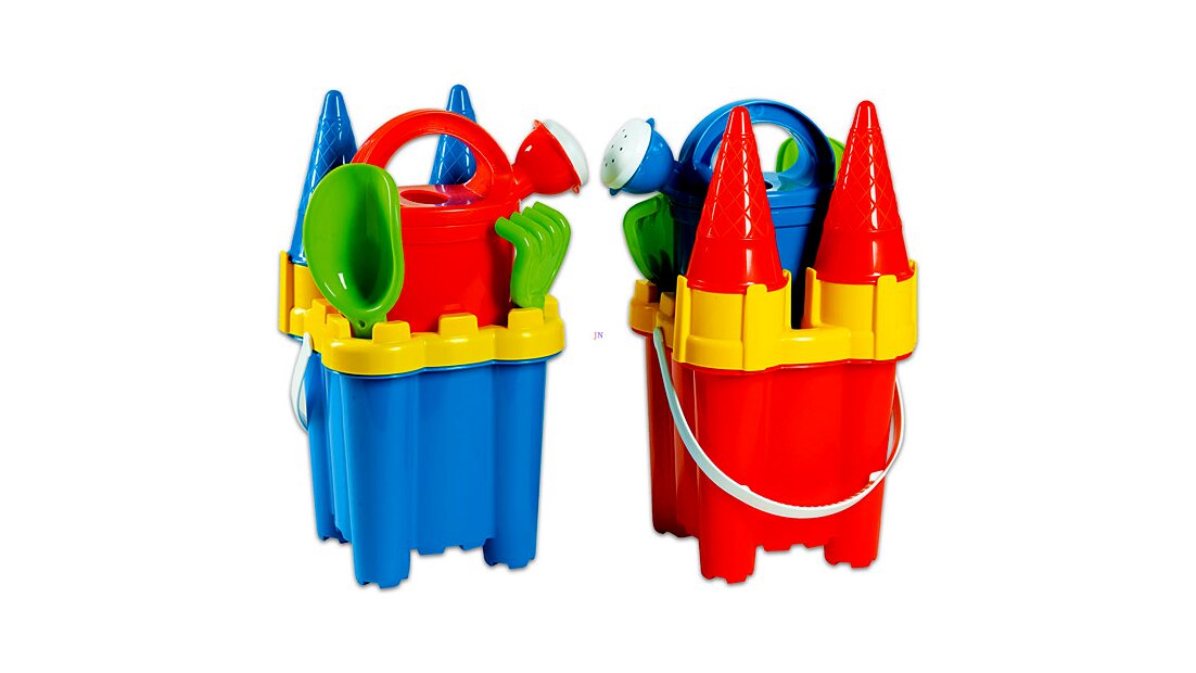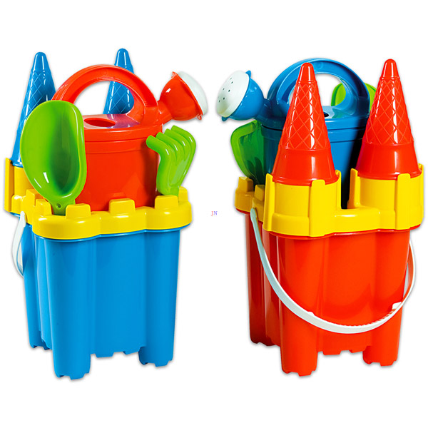Szuper homokozókészlet, mellyel könnyedén megépítheted álmaid kastélyát! Szállítsd a kannával az építési területre a vizet és formázd meg a homokot a készletben található eszközökkel. A homokozóban a legjobb, hogy szinte bármilyen játékot lehet játszani és bármit lehet építeni benne. A nagyszerű homokvár készletben szuper dolgokat találhatsz, többek között vár alakú vödröt, toronynak való formákat és különböző eszközöket, mellyel a vár felépülhet. A játék műanyagból készült. Óriási kastélyokat építhetsz a vödörrel, a kis kiegészítőkkel pedig remek bástyákat készíthetsz. Próbáld ki te is! A termék színe eltérhet a képen láthatótól. A feltüntetett ár 1 db-ra vonatkozik, melyet véletlenszerű változatban szállítunk. Mérete: 29 x 15 x 15 cm.