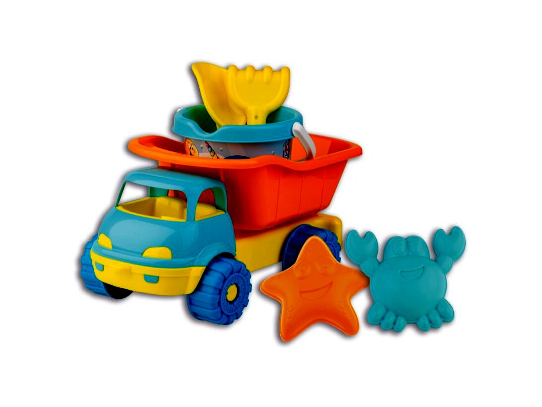 A készletben egy teherautó is található, amellyel számos izgalmas kaland játszható el az építkezéstől elkezdve a közlekedős szerepjátékokig. A teherautó billencsében könnyedén elfér minden homokozó eszköz.