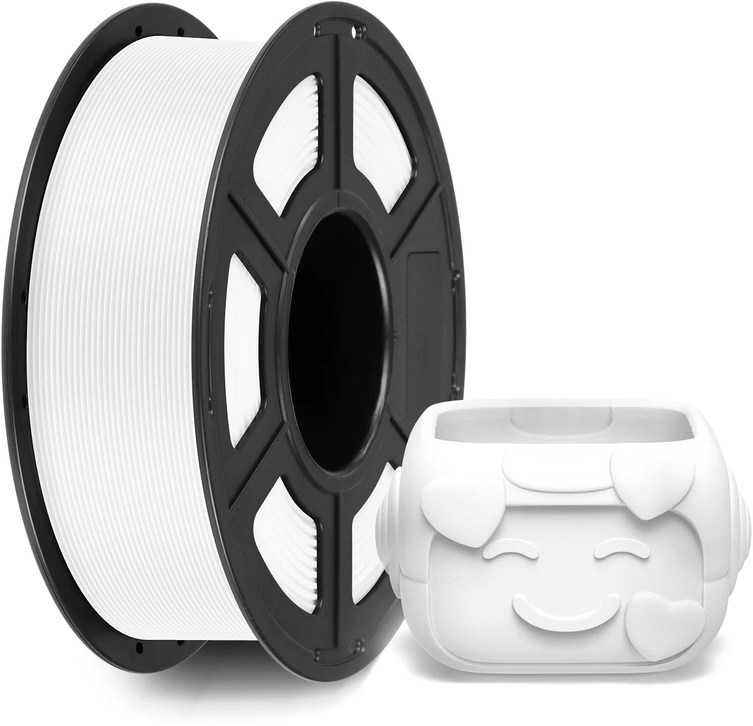 • A fehér filament különösen kedvelt prototípusoknál, mert jól láthatóak rajta az élkialakítások, felületi részletek, és fotózáshoz is ideális.