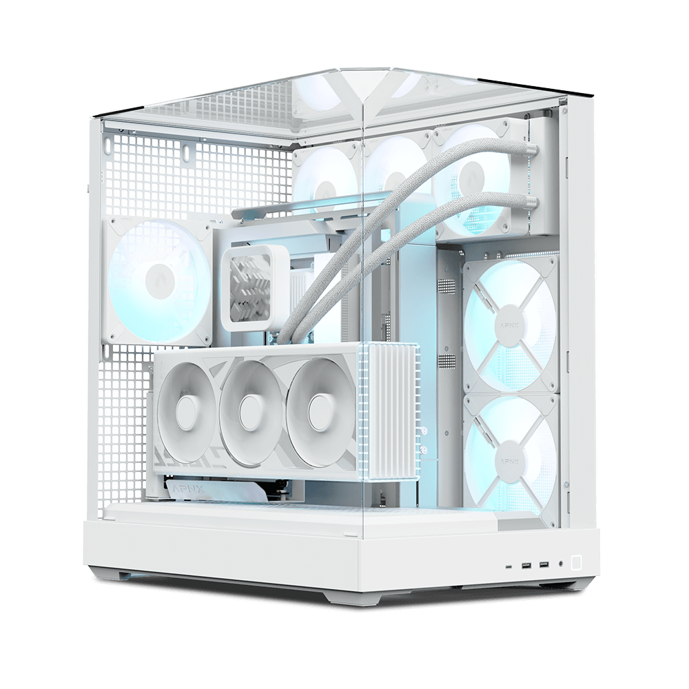 Az APNX V2 fehér midi torony számítógépház azoknak készült, akik a kiemelkedő hűtési teljesítményt modern, letisztult designnal szeretnék ötvözni. A gyárilag beépített 4 darab 140 mm-es ventilátor, a kiváló szellőzésre tervezett előlapi kialakítás és a tágas belső tér ideális választássá teszik nagy teljesítményű gamer és kreatív munkára szánt rendszerekhez egyaránt.