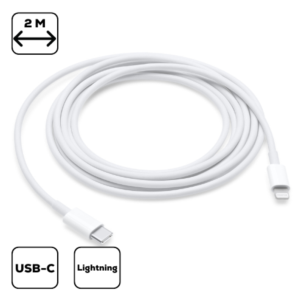 A 2 méteres Apple USB-C to Lightning töltőkábel (fehér) segítségével könnyedén csatlakoztathatod USB‑C vagy Thunderbolt 3 (USB‑C) portos készülékedet, hogy töltsd és szinkronizáld azt. iPad-edet is könnyedén töltheted ezzel a kábellel, amely kompatibilis bármelyik Lightning csatlakozós eszközzel.