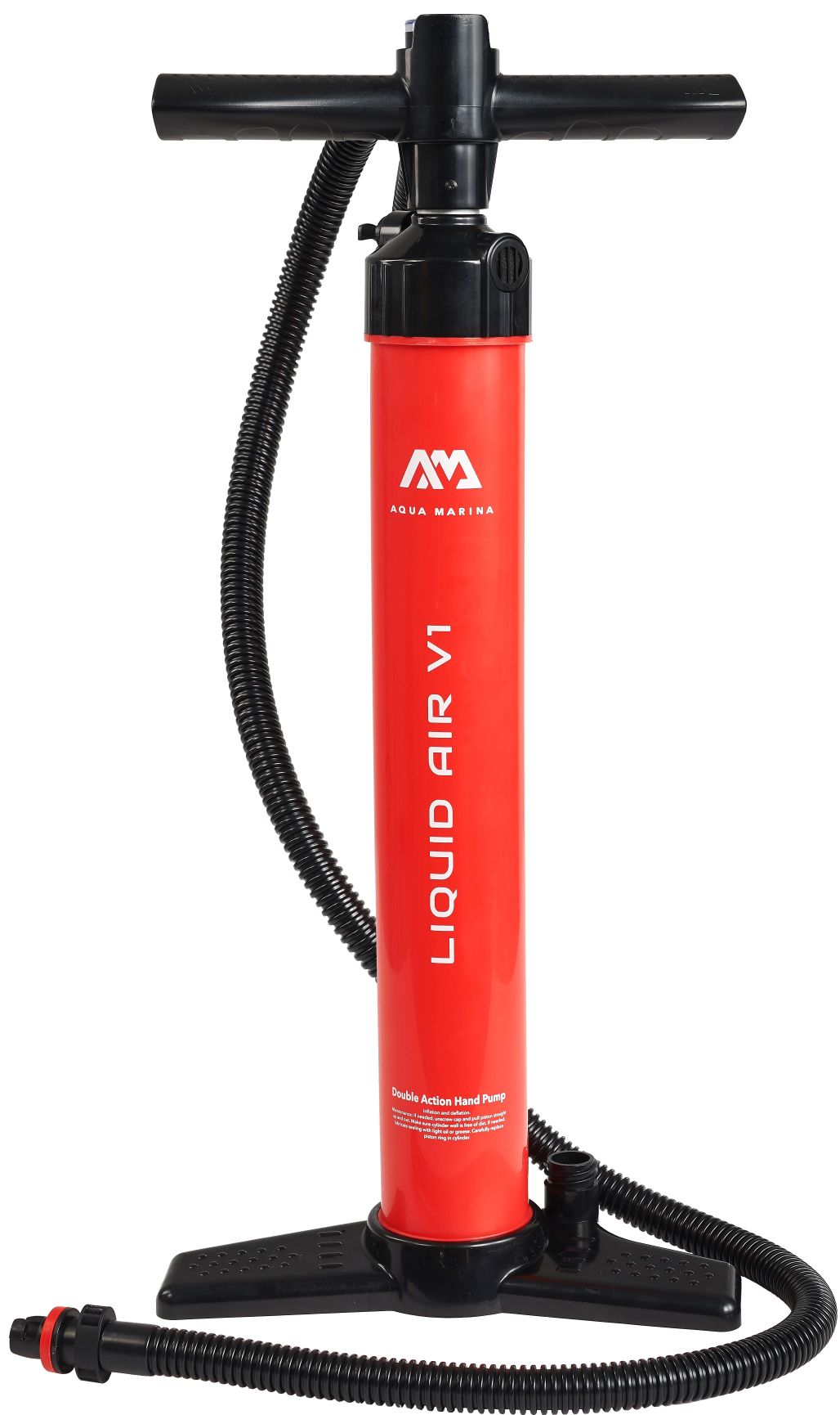Az Aqua Marina termékeket a funkcionalitás, tartósság és könnyű használat jellemzi. A Liquid Air V1 pumpa ezeknek az értékeknek teljes mértékben megfelel. A pumpa kettős működése azt jelenti, hogy mindkét irányban pumpálás során levegőt fúj a SUP-ba vagy kajakba, ezzel jelentősen csökkentve a felfújási időt. Az ütésálló manométer előnye, hogy terepen is biztonsággal használható, mivel minimálisra csökkenthető a sérülés veszélye.