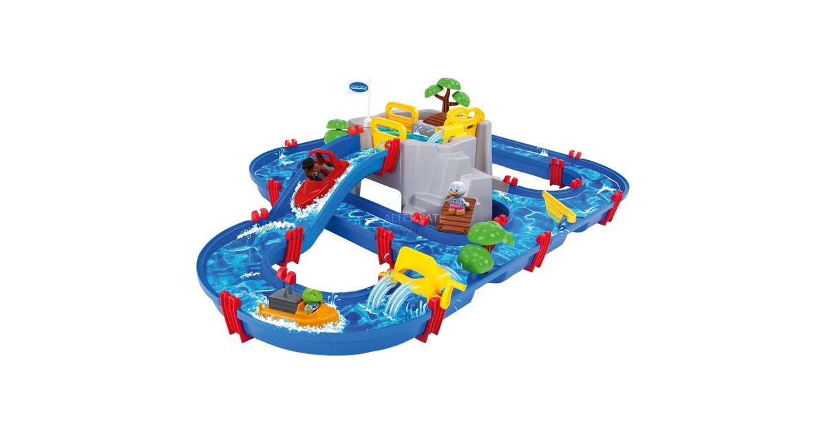 Ismerje meg az Aquaplay új kalandját, a Mountain Lake-t! Ez a nagy csatornarendszer órákig elfoglalja gyermekeit a vadonatúj játékfunkcióval; a nagy hegyi tó. Tartalmaz egy motorcsónakot, egy konténerszállító hajót és a két állatfigurát; Nils a béka és Bo a medve. A figurákkal együtt a gyerekek felfedezhetik a hegyi titokzatos barlangot, felmászhatnak a meredek sziklákra, a motorcsónakot a vidám vízesésen, vagy kincseket kereshetnek a csatornákban. Mozgassa a vizet a vízkerék tekerésével. A vízszintet a szivattyú használatával és a zárkapuk nyitásával szabályozhatja. Ez egy kreatív és játékos módja annak, hogy a gyerekek megtanulják, hogyan mozog a víz.